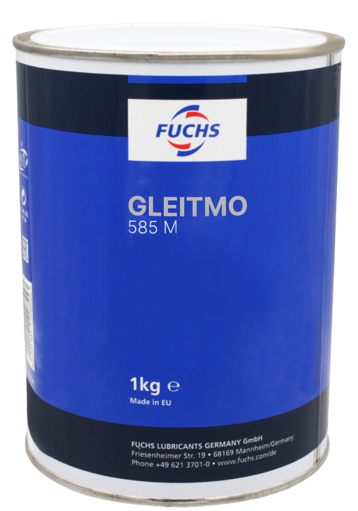 Fuchs GLEITMO 585 M is a high-grade lithium-soap paste (NLGI 2) based on mineral oil. It contains a synergetic combination of white solid lubricants which cushion shock loads and reduce wear. GLEITMO 585 M helps to prevent fretting corrosion and permits long lubrication intervals.ApplicationsGLEITMO 585 M is used for heavy-duty bearings and lubrication points of all types. It is also suitable for lubrication points subject to the risk of fretting corrosion or exposed to oscillatory movements or vibration.GLEITMO 585 M is excellently suited for the lubrication of universal-joint shafts. Owing to the white coloration, GLEITMO 585 M is also used in applications involving clean conditions, amongst others in textile and paper processing as well as filling and packaging machines.CharacteristicsTemperature range: -20 °C to +120 °CProvides extensive protection against wear – even with shock load and oscillatory movementReduces fretting corrosionProvides excellent corrosion protectionPermits long lubrication intervalsVery resistant to agingPermits heavy-duty machines and systems to function reliablyTechnical data Manufacturer No. 601061028 Colour beige Temperature range -25 / +120 ° C Base oil mineral Thickener Li Base oil viscosity [40°C] 100 mm²/s NLGI grade 2 Dropping point >=170 ° C Water resistance 1-90 rating Friction coefficient appr. 0,10 FAG-FE 9 test A/1500/6000-120 F50 > 300 h BranchesMachinery, equipmentPower generationHazard Statements (CLP)Signal word: -Hazard Statements (H-Codes)H412: Harmful to aquatic life with long-lasting effects.Precautionary Statements (P-Codes)Prevention:P273: Avoid release to the environment.Disposal:P501: Dispose of contents/container to an appropriate treatment and disposal facility in accordance with applicable laws and regulations and product characteristics at the time of disposal.Fuchs GLEITMO 585M, Fuchs GLEITMO 585-M Information on product safety (Manufacturer, Contact)FUCHS LUBRICANTS GERMANY GmbH, Friesenheimer Str. 19, 68169 Mannheim, GERMANY, +49 621 3701-0, , www.fuchs.com