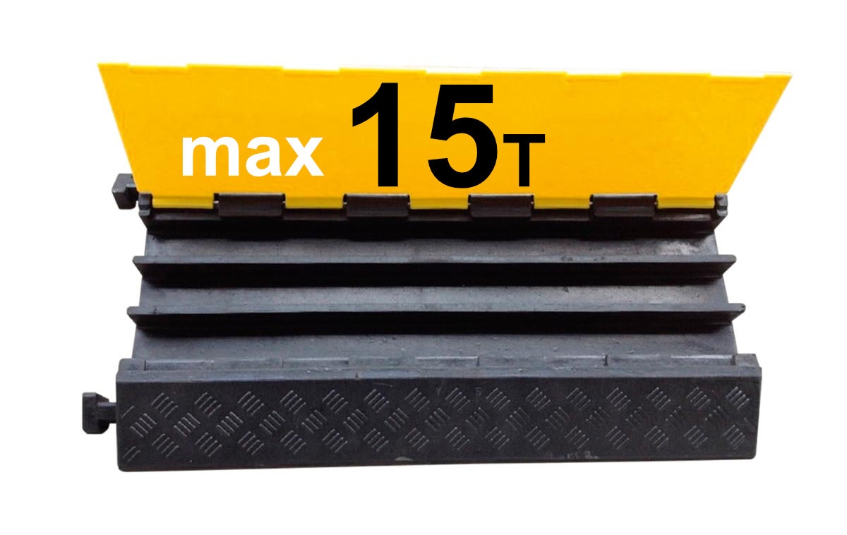 Evertec 8232, 3-Channel cord ramp protects cables, wires and hoses from driveway trafficSuitable for vehicle traffic indoor and outdoorDriveway for cars & heavy trucks up to 15 tons3 separate cable & wire channelsInterlocking connection modules, no tools requiredYellow Jacket (safety lid) with warning symbolsEasy handling of cables due to hinged lidTechnical dataMaterial: rubberLoad capacity: 15 tonsWeight: 20 kgDimensions: 90x50x7cm (L x W x H)Channel dimensions: 55×50 mm (2¼” x 2”)Color: black / yellow (Cover)3 cable channels 55x50mm Information on product safety (Manufacturer, Contact)HELMUT FELDTMANN GmbH, Zunftstraße 28, 21244 Buchholz, 04181/2004-0,