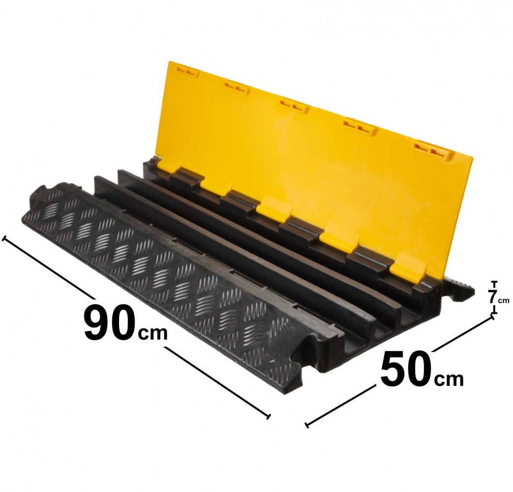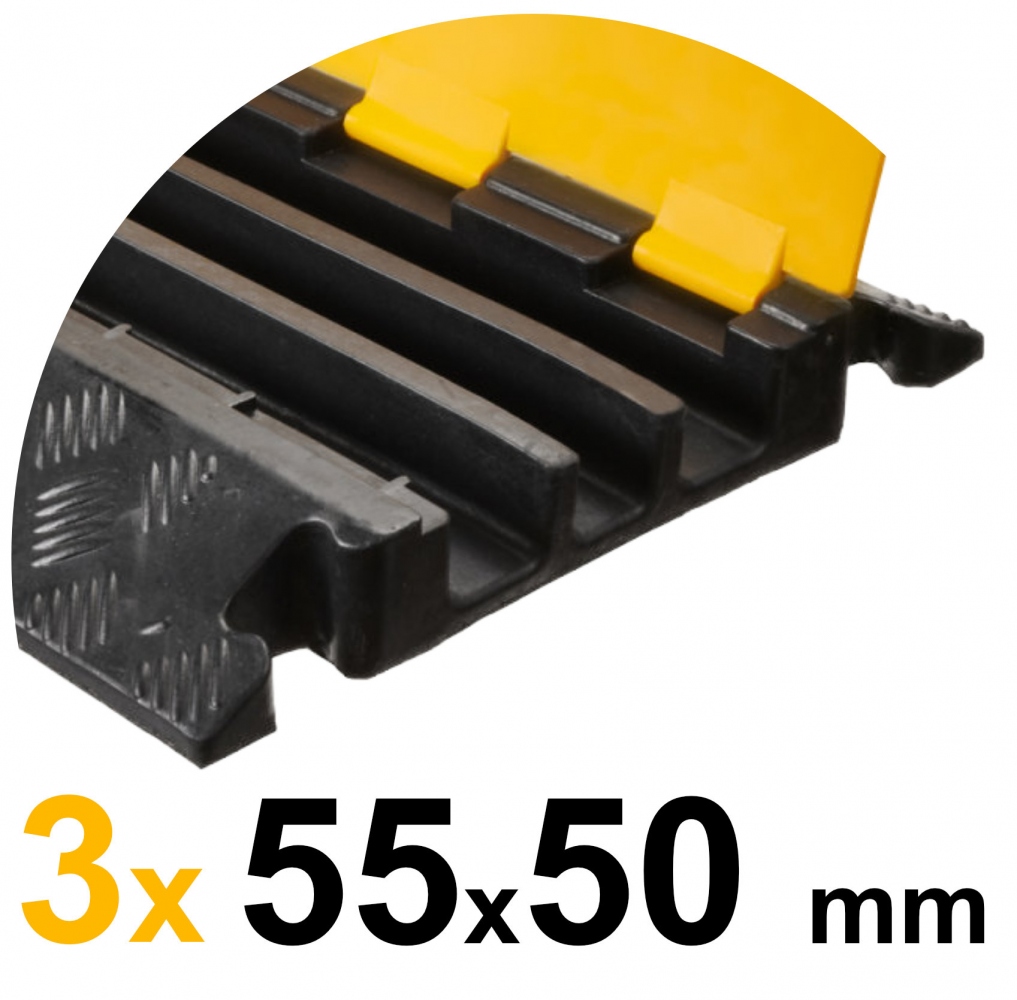 Heavy Duty Cable Protector Ramp 3 channels rubber/PE 90x50x7cm, 15t