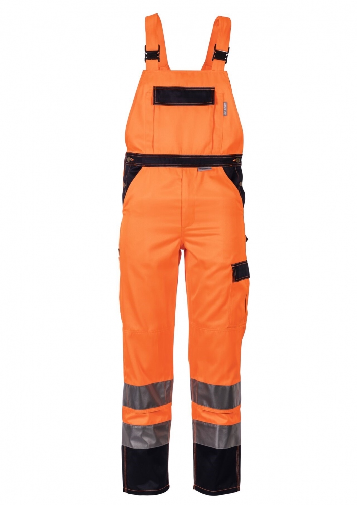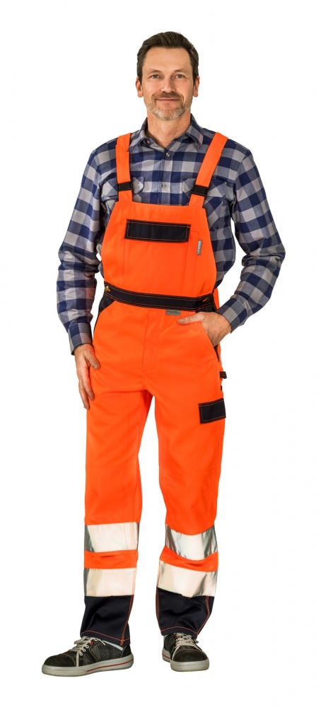 Modern and with plenty of pocketsModern design, very comfortable to wear thanks to the high back, good visibility and plenty of storage options – you are well-equipped in all respects with the DuraWork Dungarees.This item is certified as knee protection to EN 14404 Type 2, Level 1 in conjunction with a PLANAM knee pad (product number 9901027).Additional InformationProduct lines High VisibleColour orange/ navyProduct group 2026MaterialOrange and yellow: 85 % polyester, 15 % cotton, Canvas weave, approx. 290 g/m²Shrink-resistance in accordance with DIN EN ISO 6330navy and green: 65 % polyester, 35 % cotton, diagonal twill, approx. 320 g/m²Shrink-resistance in accordance with DIN EN ISO 6330Design: Reflective stripe 3M™ Scotchlite™ Reflective material 8912 N silverExtraKnee pads can be integratedHammer loopMobile phone pocket and thigh pocket on the leftDouble ruler pocket on the right thighAdjustable waistband with jeans buttonsPatch bib pocket with flap and Velcro closureIntegrated pen pocket to the left and right of the bib pocketInner bib pocket, pouch pocket2 rear pockets with flaps and Velcro closure2 side pocketsZip flyHigh back with bracesElasticated braces and easy to close plastic bucklesSizes: 24 – 25 – 26 – 27 – 28 – 29 42 – 44 – 46 – 48 – 50 – 52 – 54 – 56 – 58 – 60 – 62 – 64 90 – 94 – 98 – 102 – 106 – 110Care instructions Information on product safety (Manufacturer, Contact)PLANAM Arbeitsschutz Vertriebs GmbH, Letter Strasse 50, 33442 Herzebrock-Clarholz, GERMANY, +49 5245 8606-0, , www.planam.de