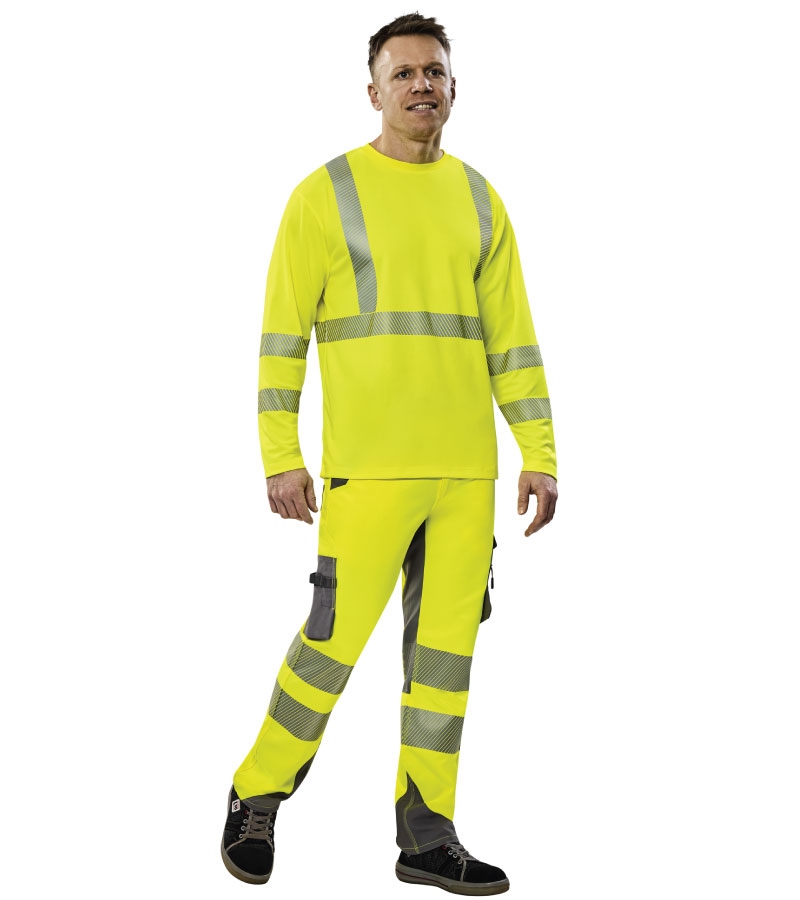 ISO 20471 class 2 certified Norit High Visibility T-Shirt Long SleevesHigh wearing comfort thanks to segmented reflective stripes.Round neck1 reflective strip over each shoulder1 reflective strip around the belly2 reflective strips around each sleeveMaterial Material: 100 % polyester (approx. 150 g/m²)Collar: 94% polyester, 6% elastaneDesign: Reflective PipingColor: yellow / zinc greySizes: XS, S, M, L, XL, XXL, XXXL, 4XLClick to see the entire Norit High Visibility collectionAdvantagesNorit High-Visibility Series: Certified Safety According to EN ISO 20471 for High-Visibility Clothing.Certified UV Protective Clothing According to UV Standard 801 (UVS 065122)Maximum Flexibility and Freedom of Movement thanks to Four-Way Stretch Inserts.Gender-Specific Fits for Women and Men.Fields of applicationStandards