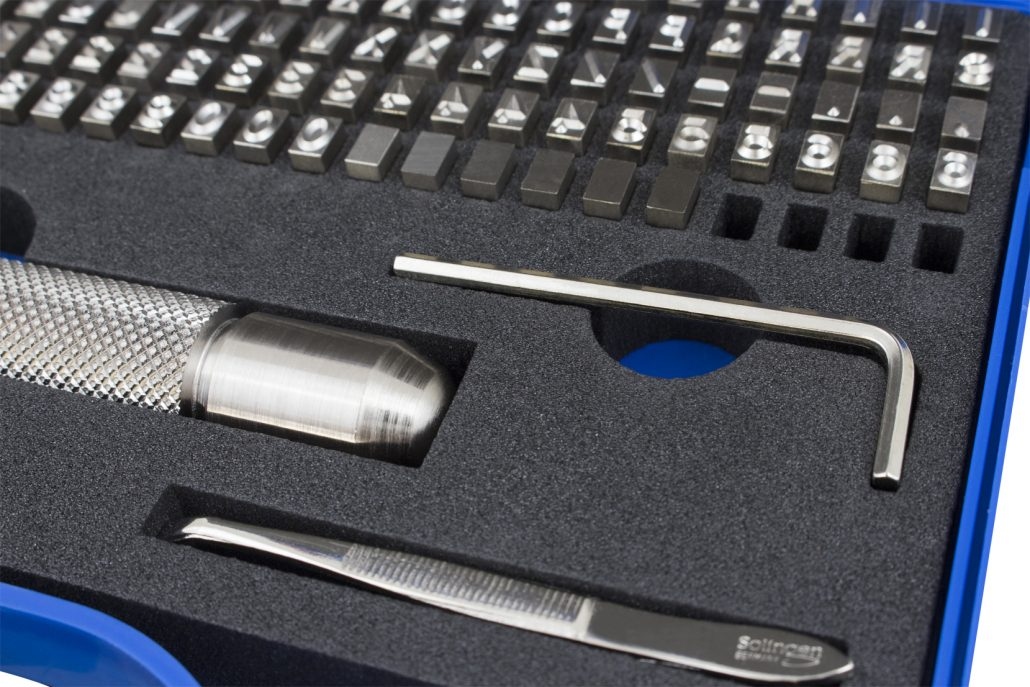 100 marking removable punchies, characters conform to European standardsChrome-molybdenum alloy steel punchesPunches for marking steel and other metalManufactured from hardened steel of 59 +-1 HRCDelivered with the hand punch holder conforms to DIN 1451Available writing characters in the case:AAABBCCDDEEEEFFGGHHIIIJJKKLLLMMNNNOOOPPQRRRSSSTTUUUVVWWXXYZ//–..,,111122223334444555666777888999000 Sizes of the writing characters (Height mm) / max. quantity inside the holder (X):Height (mm)1,52,02,53,04,05,06,0X151515131088Included in delivery:100 engraved steel punches6 pieces blind punches1 pair of tweezers1 hexagon key1 hand punch holder1 plastic carrying case Information on product safety (Manufacturer, Contact)H.W. PICKARDT e.K. SIGNIERTECHNIK, Königstr. 156 B, 42853 Remscheid, GERMANY, +49 2191 71959, , www.h-w-pickardt.com