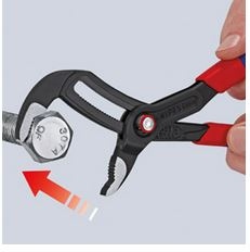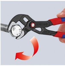 The Cobra® QuickSet combines all proven properties of the KNIPEX Cobra® with an additional push on function which makes it easier to work in very confined and inaccessible areas. Adjustment directly on the workpiece is possible by simply sliding the pliers handle. The hinge bolt locks itself with the first workload. The gripping width of the pliers is then fixed and can only be adjusted by pressing the button. The hinge bolt must be released by pressing the button and the pliers must be completely opened once to activate the QuickSet function again.Technical SpecificationsPliers grey atramentizedHead polishedHandles with non-slip plastic coatingAdjustment positions 25Capacity for pipes, inches (diameter) 2 3/4 Ø InchCapacities for pipes (diameter) 60 Ø mmCapacities for nuts 70 mmLength 300 mmHighlightsFully open, push, grab!Additional fast adjustment on the workpiece by sliding the pliers handleCombines the proven, reliable locking of the hinge bolt with an additional push function which makes it easier to work in very confined and inaccessible areasThe adjustment directly on the workpiece is possible by simply sliding the pliers handleReliable locking of the hinge bolt with the first workload. The gripping width of the pliers is then fixed and can only be adjusted by pressing the button.To re-activate the sliding function, the hinge bolt must be released by pressing the push button and the pliers must be completely opened againChrome vanadium electric steel, forged, multi stage oil-hardened Information on product safety (Manufacturer, Contact)KNIPEX-Werk C. Gustav Putsch KG, Oberkamper Strasse 13, 42349 Wuppertal, GERMANY, +49 202 4794-0, , www.knipex.de