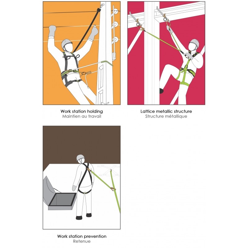 Body harness with 1 dorsal D-Ring, 1 sternal attachment and 2 lateral D-Rings for work positioningStandards: EN 361:2002 and EN358:1999Attachment Elements – 2 Chest attachment textile loops and a dorsal attachment D-Ring for fall arrest, 2 lateral D-Rings for work positioning.Adaptability – Adjustable shoulder, thigh-straps and waist beltConvenience – Shoulder and thigh-straps differentiated by a dual colour scheme. Tool holder loops and rings at the back.Ergonomics – Ideally positioned sit-strap for extended comfort.Can be used by a user with a maximum weight of 140 kg.Technical specificationsStandard(s):EN361 + EN358Belt:YesMax. User Weight:140 KgMaterial:Straps: Polyester, Buckles : SteelPPE / NO PPEPPESize:UniversalBuckle(s):5 adjustment bucklesOther attachement points:2 lateral D-rings for work positioningAttachement points:Dorsal D-ring, front attachement made of 2 textile loopsProtection:Back bearer on the belt Information on product safety (Manufacturer, Contact)KRATOS SAFETY, 689 Chemin du Buclay, 38540 Heyrieux, FRANCE, +33 (0)4 72 48 78 27,