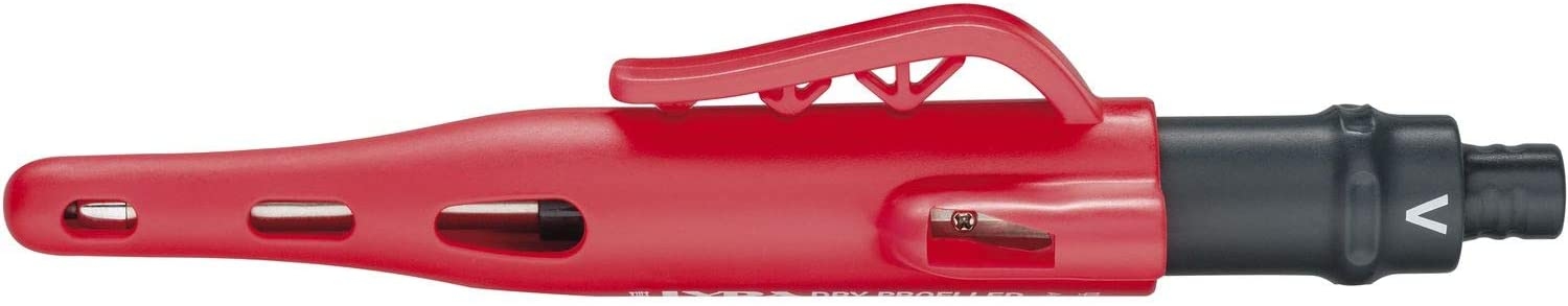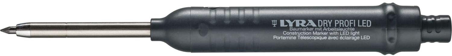 Integrated LED spot for precise applications in poorly lighted areasReady to use, batteries already insertedOptimized positioning of the LED push button on the marker for simple and immediate utilization of the LED light whenever neededHigh-quality marker with automatic lead feed in high resistant stainless steel tubeResistant cap with improved clip guarantees easy to use one-hand operationIntegrated sharpener with a guid shaft – allows easy and quick sharpening without removing the cap from the trousersEquipped with a special all surface graphite lead for all surfaces (wood, metall, glass, ceramics …) – marks easy to remove from glossy surfaces with a damp clothMulti-usage thanks to special color leads: for bright or dark surfaces, watersoluble or water resistantAvailable in assorted sets or in single colors – leads to refill from the front or back end of the markeColor black / redMaterial: PlasticDimensions L x W x H 16.5 x 3 x 3 cmClosure type click-off capPart number: L4494302 Information on product safety (Manufacturer, Contact)Johann Froescheis Lyra-Bleistift-Fabrik GmbH & Co. KG, Willstätterstrasse 54-56, 90449 Nürnberg, GERMANY, +49 911 6805-0, , www.lyra.de