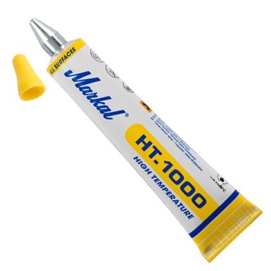 Markal HT.1000 is a metal-ball tip marker that is ideal for annealing and heat-treating operations. Mark at ambient temperature and the high-performance paint withstands temperatures up to 1000°C. The aluminum squeeze tube and thick paint makes it suitable for rough, vertical and overhead surfaces with excellent adhesion on oily and wet surfaces. Available in Europe only.Features and benefitsHigh temperature paint is ideal for welds, ingots, castings, forgings, and other annealed partsPaint withstands temperatures up to 1000°CPermanent paint marks will not rub off, allowing for long-lasting identificationDurable steel ball tip marks with indelible paint on rough or smooth surfacesOffered in 2 sizes: 3 mm and 6mm for varied mark thicknessHigh-performance paint designed not to drip on vertical or overhead surfacesMarking range -20°C to 70°C (-4°F to 158°F)Made in EUVolume: 50 mlApllication fieldsForge and casting foundriesSteel mills and warehousesWeldingHeat-treating industryIndustrial manufacturingSuitable for markingSteel and ironAluminumRusty metalPlatesAlloy and superalloy metalsNon-ferrous metalsLabelling according to Regulation (EC) No 1272/2008 The product is classified and labelled according to the CLP Regulation.Hazard pictograms