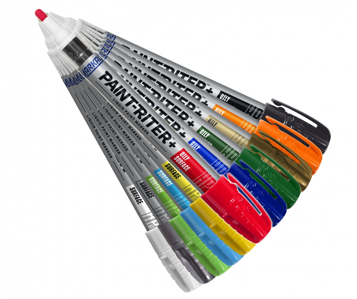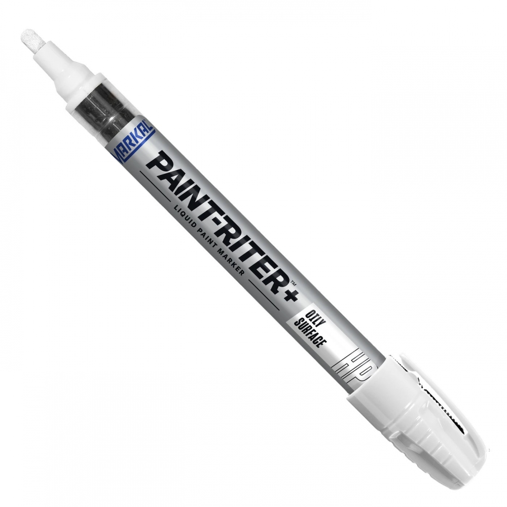 Markal Paint-Riter®+ Oily Surface (former Pro-Line® HP) is a liquid paint marker developed for superior marking performance on oily and greasy surfaces. The high performance paint penetrates through oils and greases to dry quickly and leave a bold, permanent mark that is wear-, weather-, and fade-resistant.Marking range: -50°F to 150°F (-46°C to 66°C)Marking width: 3 mmSurface usesSteel and ironAluminumPipes and tubesPlasticRubber and tiresCharacteristicsUnique paint formula resists spreading and dries quickly through oily surfaces to leave precise, permanent marksXylene-free paint reduces user health risks and eliminates California Proposition 65, EPA HAPS and SARA 313 concerns in the U.S.A.Durable metal barrel and nib reduce breakage for longer marking lifeFor low corrosion (low chlorides/halogens) applications, see PRO-LINE HP – Low Corrosion colorsEasy-to-grip clip-cap allows for convenient pocket storageMade in USAField of applicationMetal fabricationAutomotive and other transportationIndustrial manufacturingSteel mills and warehousesOil and gasConstructionAviation and aerospace