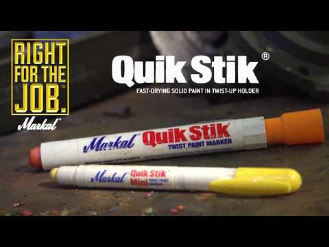 Markal Quik Stik® MiniThe Quik Stik® Mini is a compact solid paint marker in a convenient twist-up, plastic holder that is ideal for finer line marking on smooth or rough surfaces. This smaller version of the Markal® Quik Stik stores easily in a pocket or tool belt and easily advances with the turn of a knob, allowing for full use of the marker. The high-performance paint dries quickly to leave bold, permanent marks on most surfaces.FEATURES & BENEFITS:Fast-drying, vibrant paint marks dry in 5 to 7 minutesCompact plastic holder with clip-cap stores easily in pocket and keeps hands and clothing cleanMarks on virtually any surface; wet, smooth, rough, or hotWeather- and UV-resistant paint for long-lasting marksSolid paint marker advances and retracts by turning twist-up knobXylene and 2-Butoxyethanol free formula to reduce health risksMarking range: 0°F to 392°F (-18°C to 200°C)INDUSTRY USES: WeldingMetal FabricationAutomotive aftermarketConstructionIndustrial process pipingShipping supplySURFACE USES: Steel and ironPipes and tubesGlassLumber and timberCeramicConcrete and stoneRubber and tiresPlasticGHS label elements, including precautionary statementsGHS labelingHazard pictograms (GHS):