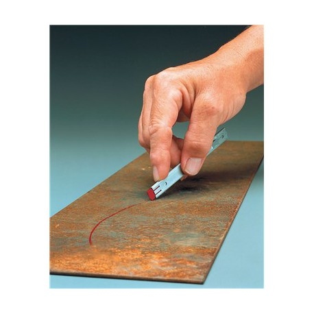 Red-Riter metal markers deliver high visibility marks which are resistant to torch flames. The red lead is more visible through a welder’s filter plate.Surface usesAluminumStainless steelSteel and ironCharacteristicsHighly visible marks illuminate when cutting or weldingSuperior to soapstone in markability and durability; will not rub, burn or blow off surfaceMarks on oily, wet or rusty metals, and will not scratch or abrade surfacesRugged metal holder prevents stick breakage and includes handy pocket clip for easy storage when not in useFor low corrosion (low chlorides/halogens) applications, see Silver-Streak/Red-Riter Metal Marker – Low Corrosion ShapesMade in U.S.AField of applicationWeldingMetal fabricationShip building and repairBridge fabricationConstruction Information on product safety (Manufacturer, Contact)LA-CO Industries Europe S.A.S., 465 All. des Combes, 01150 Blyes, FRANCE, +33 4 74 46 23 23, . www.lacoindustries.com