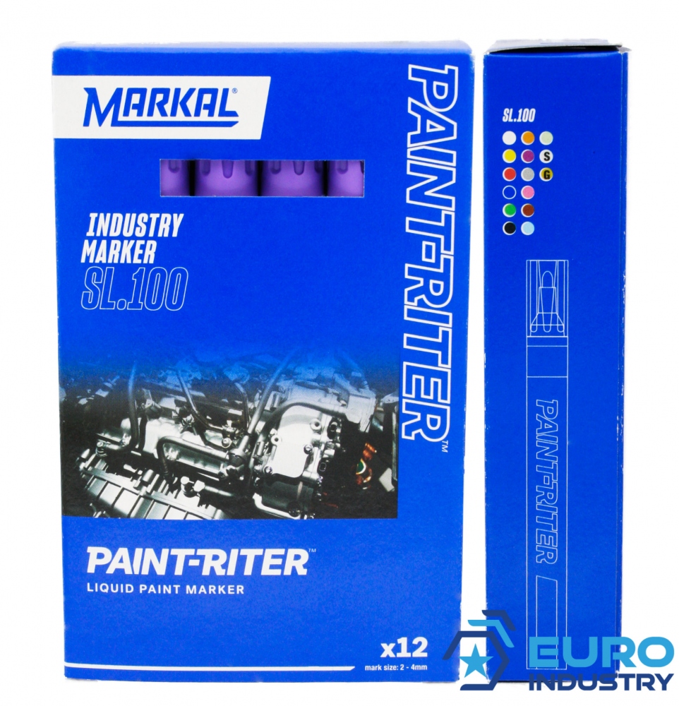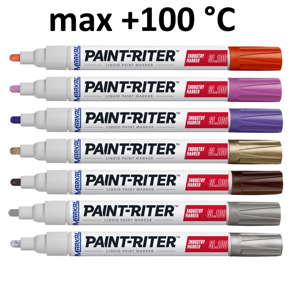 SL.100 xylene-free paint marker – Fast-drying, low-odor liquid paint markerSL.100 provides long-lasting marks for almost any surface. The 15 opaque, bright colors are weather- and UV-resistant for excellent mark identification.Features15 colors for excellent mark identification, quality control, and parts inspectionFast-drying, indelible permanent paint for immediate handling reduces work downtimeXylene-free paint reduces user health risksCertified for identification marking of Public Collections (Centre de recherche et de restauration des Musées de France)Strong medium bullet tip resists wear to provide long marking lifeMarking Range: -20°C to 50°C (-4°F to 122°F)Mark temperature resistance: up to 100°C (212°F)Made in EUFields of applicationAutomotive and other transportationAutomotive assemblyIndustrial manufacturingMetal fabricationConstructionWeldingShipping supplyMuseum and public collectionsSurface usesSteel and ironRubber and tiresGlassPlasticCeramicCloth and fabric (textiles)Pipes and tubesCardboardPlatesNon-ferrous metalsTileConcrete and stoneAlloy and superalloy metalsAdditional informationThis high quality paint-marker can be used in industrial environment.Permanent, low odour ink providing an opaque lacquer finish Lightfast, water-resistant.Valve action paint marker.Indelebile opaque paint.Highly visible on dark surfaces.Writes on most surfaces including plastic, metal, rubber, wood, etc….Resistant to hot and cold temperatures.Medium felt tip 2 – 4 mmMarkal® Paint-Riter® SL100, Markal Paint-Riter SL 100, SL-100 Information on product safety (Manufacturer, Contact)LA-CO Industries Europe S.A.S., 465 All. des Combes, 01150 Blyes, FRANCE, +33 4 74 46 23 23, . www.lacoindustries.com