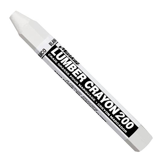 Markal Lumber Crayon 200 is a soft, standard-grade lumber crayon for general-use marking and works well in cold climates. The wax-based mark is weather- and UV-resistant. Marking range: -20°F to 150°F (-29°C to 66°C)Colors: white, yellow, orange, red, green, blue, purple, blackSurface usesWoodConcrete and stoneMetalPlasticRubberCharacteristicsKnown in construction trades as keel or layout chalkFormulated for weather- and fade-resistant marking on most surfacesSpecial softer formula allows for superior marking in cold climatesMarking range: -20°F to 150°F (-29°C to 66°C)Made in U.S.A.Field of applicationConstructionStone and masonryLumber and timber industry Information on product safety (Manufacturer, Contact)LA-CO Industries Europe S.A.S., 465 All. des Combes, 01150 Blyes, FRANCE, +33 4 74 46 23 23, . www.lacoindustries.com