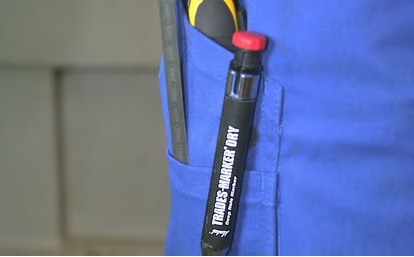 TRADES-MARKER® DRY is a graphite clutch pencil with an extended fine tip. Fully designed in metal for more resistance than plastic holder, it incorporates a convenient sharpener and a clip. It can also be used with color leads for bright and dark surfaces, or with Welding refills featuring Silver Streak® and Red Riter® leads. FEATURES & BENEFITSFine tip extends to 45 mm, ideal for hard-to-reach places (allows for deep markings, in fixation holes)Cap, body, and clip in metal to ensure durability and strength for professional useAutomatic lead ejection: a single press on the button pushes the lead out by 2 mmPractical as it is always at hand, the sharpener is incorporated into the push button, allow for extremely precise markingsSturdy clip for hooking onto shirts or pantsLead easy to replace: unscrew the push button, insert the new lead, screw the button back in (colored lead much already be sharpened before insertion)Thanks to 4 types of refills, (graphite, colored for polyvalent marking, or welding refills with Silver-Streak®and Red-Riter®), it can write or mark on all types of surfaces and materials (dusty, rough, smooth, greasy, wet, dark, etc.)Uses lead 2.8 mm in diameter, compatible with other refill types on the marketINDUSTRY USESConstructionLumber and timber industryWeldingMetal fabricationMaintenance servicesSURFACE USESSteel and ironStoneTileCeramicLumberGlassPlastic Information on product safety (Manufacturer, Contact)LA-CO Industries Europe S.A.S., 465 All. des Combes, 01150 Blyes, FRANCE, +33 4 74 46 23 23, . www.lacoindustries.com