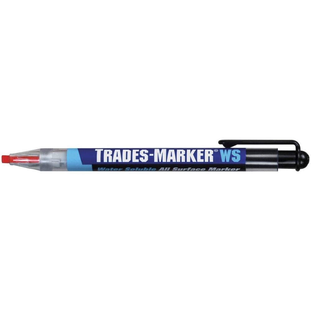 TRADES-MARKER WS is a refillable, all-surface marker that leaves a removable mark and is safe for all surfaces. Marks can be wiped away easily with waterMultiple colors are available for easy identification: white, yellow, red, and blackDelivery includes 1 marker with 1 leadSurface usesGlassPlasticStoneNon-porous surfacesSteel and ironTileCeramicCharacteristicsIdeal for quality control and temporary marking needsGreat for many surfaces including: smooth, rough, rusty, or dirty surfacesMarker refills eliminate mess and paper waste of grease pencils, saving time and moneyA durable plastic holder helps prevent breakage and keeps hands and clothing cleanPush-button advancing makes for easy, one-handed use.Convenient clip allows for pocket storage and prevents rolling off the work tableMade in U.S.AField of applicationAutomotive and other transportationQuality controlGlass industryMetal fabrication Information on product safety (Manufacturer, Contact)LA-CO Industries Europe S.A.S., 465 All. des Combes, 01150 Blyes, FRANCE, +33 4 74 46 23 23, . www.lacoindustries.com