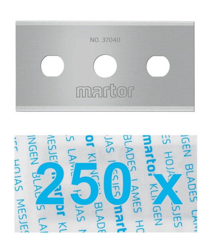 INDUSTRIAL BLADE NO. 37040 from MARTOR is a high-quality blade made of steel. It is very sharp and has four cutting edges that can be used one after the other for an extra long service life. The blade is 43 mm long, 22 mm wide and 0.40 mm thick. With square ends, alloyed carbon steel, deep-edgedIndividually packed in a paper / 250 piecesLength: 43.00 mmWidth: 22.00 mmMaterial thickness: 0.40 mmWeight: 2.5 gMaterial: steelGround: deep-edged, 2-sided ground-edgeBlade facets: Double bevel edge-groundBlade characteristics: 4-times usable blade Information on product safety (Manufacturer, Contact)MARTOR KG, Lindgesfeld 28, 42653 Solingen, GERMANY, +49 212 73870-0, , www.martor.com