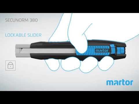 A long bladed safety knife? This has been a contradiction of terms for a very long time. Until now. The new SECUNORM 380 is the first safety knife worldwide featuring automatic blade retraction AND a blade extension length of almost 8 cm. Or would you like something smaller? This version has a blade extension of 4 cm. If you are looking for a low risk alternative to the usual fixed blade cutter, here is your answer. As an additional safety feature, we’ve included a transportation lock, to disable any unintended blade activity.DetailsLong blade extension: With a blade extension of exactly 4 cm, this safety knife can be used to safely cut 4-ply cardboard, open sacks, separate paper sheets, slab rolls, carve building foam, slice polystyrene slabs…the list continues.Tool-less blade change: To change the blade, simply follow the arrow. Pressing down on the small blade change activator releases the capping end of the cutter, allowing it to swing downwards, and ultimately allowing you to remove the blade carrier and the blade.Ergonomic handle: It goes without saying, the more ergonomic the handle, the easier it is to cut. The SECUNORM 380 with its curved shape, carefully positioned soft-grip and ribbed slider, is an ergonomic dream.Particularly robust: The core of this cutter is a particularly stable and abrasion resistant metal rail. The body of the cutter is made from a high grade plastic, capable of fulfilling high expectations.For right and left handers: Right and left handed users alike can be charmed by the new SECUNORM 380. Turn the stainless blade 180° according to your preference and to suit your needs. The eyelet at the end of the cutter is also great for whenever you want to attach your SECUNORM 380.Product informationMeasurements (L x W x H): 170.5 x 20 x 34 mmWeight product: 76 gCutting depth: 36 mmBasic material: Glass fibre reinforced plastic Installed blade Length: 109.5 mmWidth: 17.9 mmMaterial thickness: 0.50 mmGround: 2-sided ground-edgeBlade facets: Double bevel edge-groundOptional bladesTechnical features