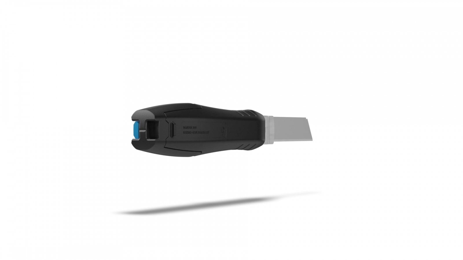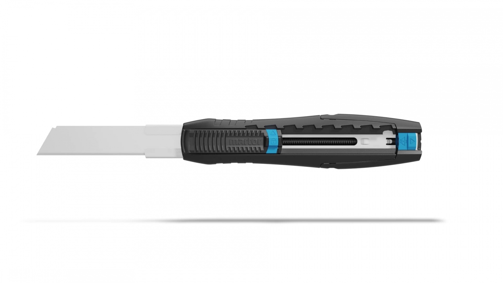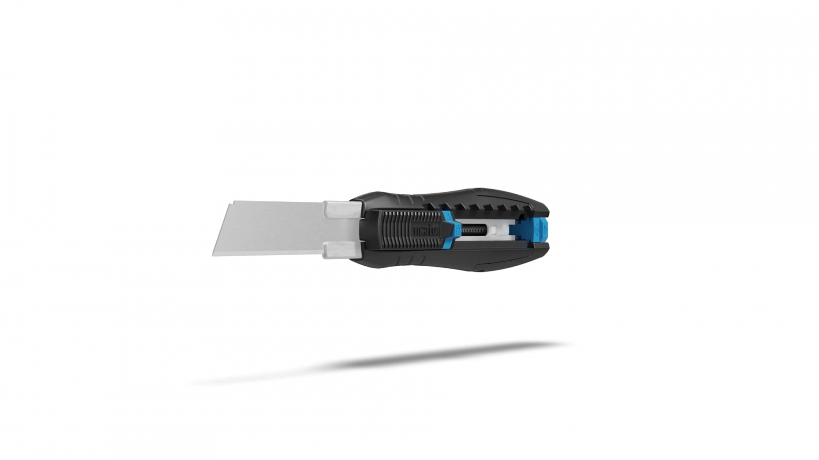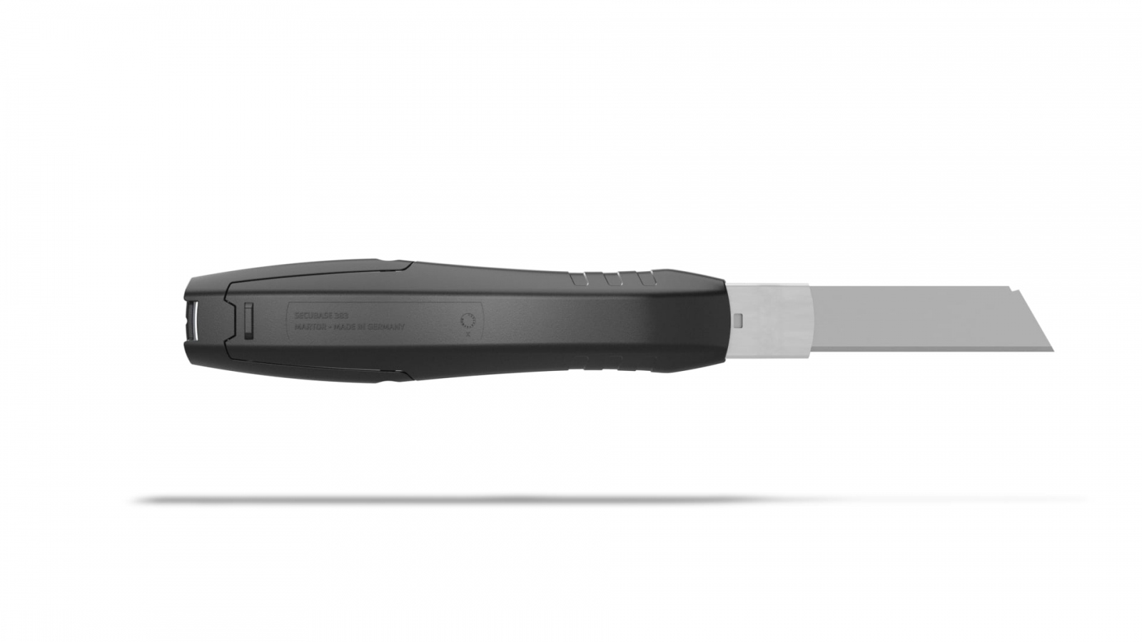 A safety knife that also performs as a cutter? The new SECUBASE 383 can be both. Your cutting tool is equipped with automatic blade retraction to prevent cutting injuries. Some cutting tasks, such as saw cuts, however, are easier with a fixed blade. The blade can therefore be locked in seven different positions to enable efficient working.DetailsLong blade extension: The blade can extend to a maximum of 7.8 cm. The SECUBASE 383 can then be used for the safe and easy cutting of materials such as 4-ply cardboard boxes, bagged goods, paper rolls, building foam and polystyrene sheets.Locking and Retraction: A choice of seven settings (cutting depths from 7 mm to 73 mm) is available when you want to use your SECUBASE 383 as a cutter. Afterwards, release the lock and the blade will retract as usual.Ergonomic handle: The SECUBASE 383 has a consistent ergonomic design to protect your hand. The slightly tapered handle is very comfortable to hold. Another ergonomic feature is the slider, which is particularly easy to move because of its built-in ramp.For right and left hander: The SECUBASE 383 is supplied ready for use by right-handers. Left handers just need to turn the blade by 180° to start cutting. The slider and the lock are operated with the thumb.Easy blade change: To access the long, flexible blade, use the blue blade change button at the end of the handle. You can now pull out the inner section including the slider. The blade is held in position by two magnets.Product informationMeasurements (L x W x H): 170.5 x 25 x 34 mmWeight product: 78.5 gCutting depth: 73 mmBasic material: Glass fibre reinforced plasticInstalled blade Length: 109.4 mm Width: 17.9 mm Material thickness: 0.50 mmOptional blades Technical features