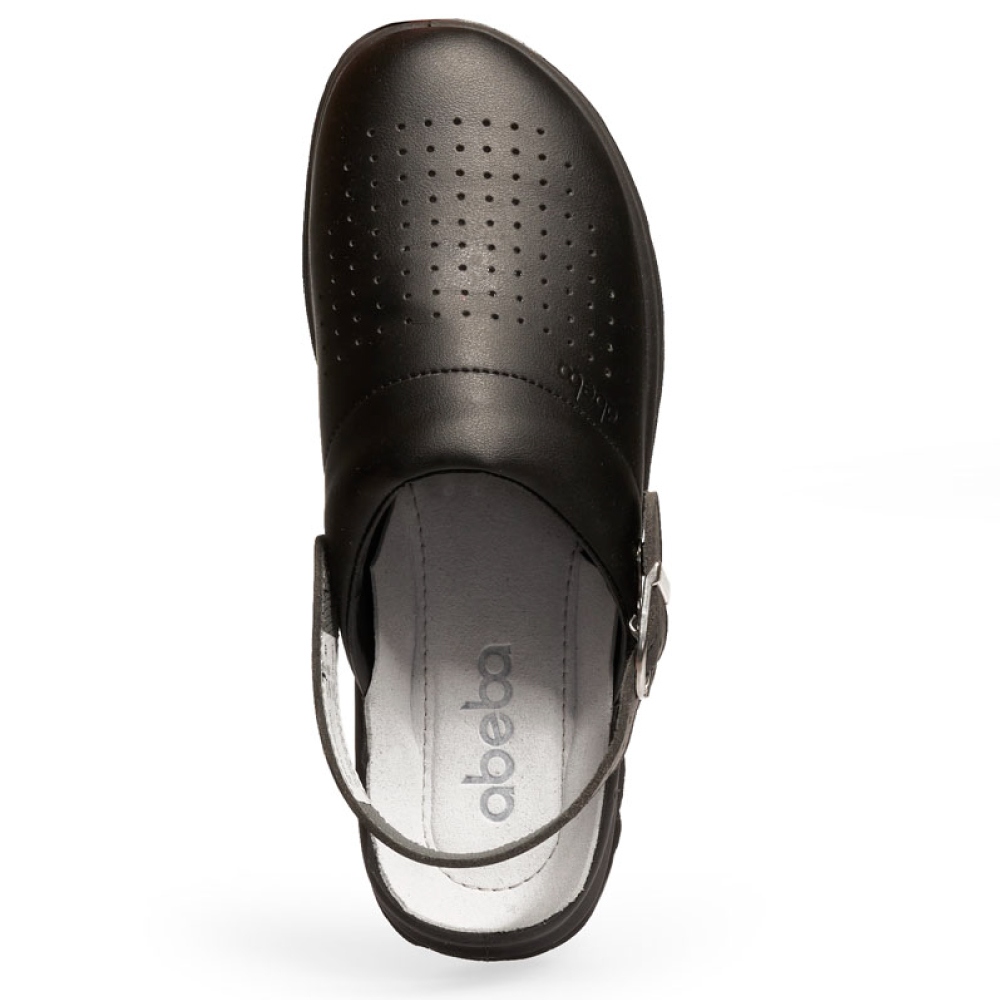 Abeba® 877030 ACTIVE are comfortable, breathable clogs made of washable perforated microfiber that are shoes specially designed to reduce leg fatigue and protect against injuries during long hours of standing at work. Ideal for nursing homes and the food industry.BenefitsReducing leg fatigueAbsorbing vibrations and unevenness (Shock Absorber Technology)Protecting against injuries during long hours of standing and constant movementEasy to cleanFeaturesIncreased breathabilityIncreased durability of the upperWashable at 30 °CSlip-resistant outer sole with self-cleaning technologyResistance to brief contact with hot substances up to 180 °CMeeting the standard EN ISO 20347:2012 and have a safety class of OBLightweightAntistaticAdjustable fit with buckle strapEnergy absorption in the heel areaSole is resistant to diesel, fuel and oilTechnical DataStandard: EN ISO 20347:2012Safety class: OBColor: blackUpper: microfiber, perforatedLining: textileToe: thermoplasticToe cap: noneInsole: textileSole: PU/PUFastener type: buckleWeight per one shoe: 283 g (size 40)Gender: Men and WomenSize: 36-48Fields of applicationHospital, doctors, nursing staffHealthcare workersGastronomy, HoReCa (hotel, restaurant, catering), food service & kitchen staffPharmaceutical industry