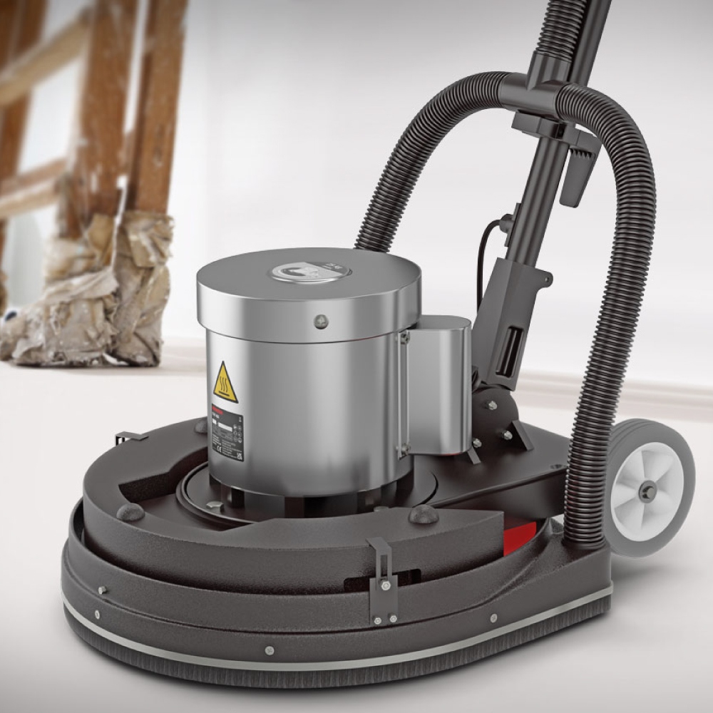 Powerful rotary floor grinder MENZER ESM 406 Dust Control 1200 W – Incl. sanding kit and Suction cleaning ringSingle-disc machine for professionalsUniversally applicable for sanding wooden floors, cleaning, oiling or polishing as well as removing paint and adhesive residuesIn combination with an industrial vacuum cleaner, it is possible to work almost dust-free by using the supplied suction cleaning ringIdeal for larger floor areas, e.g. public buildings, industrial halls, commercial operations, schools, hospitals, etc.With the , Menzer ESM 406 can be used working on almost any type of floor, such as wood, tiles, concrete or screedCan be also used for floor cleaning with the CharacteristicsDurable, powerful motor (1,200 W)Incl. suction ring for almost dust-free workingExtensive accessoriesExtensive equipmentMaintenance-free planetary gearHeight-adjustable handleIntegrated safety switchApplicationsUniversal floor grinding machine for parquet, linoleum, PVC, rubber, stone, tiles, wood, graphite, concrete, ceramics, screed, etc.Removal of dirt, dust, stains, adhesive residues and old wax layersCan be used as a floor polishing machine and floor cleaning machine with the cleaning kit (art. no. )Re-oil and wax floorTechnical specificationsVoltage: 220–240 V ~ 50 HzPower consumption: 1,200 WWeight: 32 kg (machine) +12.5 kg (accessories)Idle speed: ca 150 U/minSanding disc: Ø 406 mmIncluded in deliveryRotary floor machine Menzer ESM 406Dust extraction ring •Sanding disc for grinding wheels •Sanding disc for hook & loop sanding discs •Sanding disc for sanding and polishing pads •Additional weight: 12.5 kg Information on product safety (Manufacturer, Contact)MENZER GmbH, Celsiusstrasse 20, 04420 Markranstädt, GERMANY, +49 34205 9279400, , www.menzer-tools.com