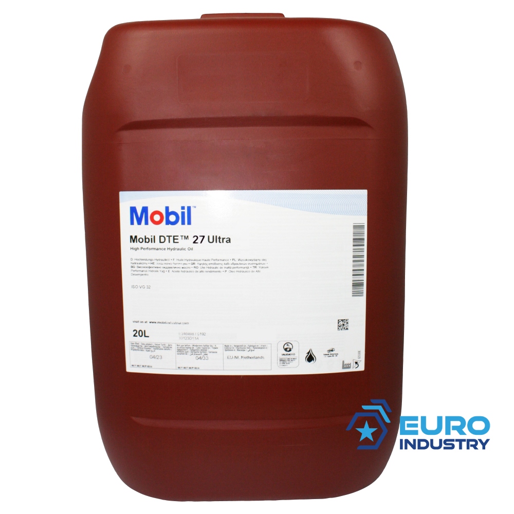 Mobil DTE 27 Ultra is a high-performance zinc-based anti-wear hydraulic oil (HLP, ISO VG 100) with extended oil life capabilities. It has demonstrated up to 2 times longer oil drain intervals in comparison to similar competitive oils.ApplicationHydraulic systems critical to deposit build-up or where sludge and deposits form with conventional products.Hydraulic systems requiring a high load-carrying capability and anti-wear protection, and when thin oil-film corrosion protection is an asset.Where small amounts of water are unavoidable.Systems containing gears and bearings. Machines employing a wide range of components using various metallurgy.Specifications & ApprovalsDIN 51524-2:2017-06 – Requirements for HLP hydraulic oilsISO L-HM (ISO 11158:2009)HOCNF Norway-NEMS, BlackASTM D6158 (Class HMHP)China GB 11118.1-2011, L-HM (General)China GB 11118.1-2011, L-HM(HP) FeaturesOutstanding keep clean performanceEnhanced anti-wear performanceExceptional thermal and oxidation stabilityEnhanced corrosion protectionControlled demulsibilityQuality reserveSize: 20l canisterAlso available in: 208l drumAdvantages and Potential BenefitsReduced system deposits and sludge to help protect equipment and extend equipment life, reduce maintenance costs and improve total system performanceMeets or exceeds major pump manufacturer requirements, helps extend component lifeHelps reduce maintenance downtime and costs by contributing to system cleanliness and deposit reduction even under harsh conditionsHelps ensure protection with a wide variety of component metallurgy Protects systems from small and large quantities of water and helps extend filter lifeMaintains performance features even under severe service conditions and extended drain intervalsTechnical specifications Manufacturer number 143132 ISO Grade 100 Copper Strip Corrosion, 3 h, 100 C, Rating, ASTM D130 1A Density @ 15.6 C, kg/l, ASTM D4052 0.8797 Flash Point, Cleveland Open Cup, °C, ASTM D92 278 Kinematic Viscosity @ 100 C, mm2/s, ASTM D445 11.9 Kinematic Viscosity @ 40 C, mm2/s, ASTM D445 100.2 Pour Point, °C, ASTM D97 -33 Rust Characteristics Proc B, ASTM D 665 Pass Viscosity Index, ASTM D2270 108 Product description Mobil DTE 20 Ultra SeriesMobil DTE 20 Ultra Series oils meet the stringent requirements of hydraulic systems using high pressure, high output pumps as well as other hydraulic system components such as close clearance servo-valves and numerically controlled (NC) machine tools. The products exhibit outstanding oxidation and thermal stability, allowing long oil life and reduced deposit formation in harsh conditions and with severe hydraulic systems using high pressure, high output pumps. The keep clean performance helps protects critical hydraulic system components from malfunction, such as tight tolerance servo and proportional valves found in many modern hydraulic systems. These products met the most rigorous performance requirements of a wide range of hydraulic system and component manufacturers, allowing use of a single product with excellent performance characteristics.With a viscosity index around 100 and a zinc-based anti-wear system – meeting at least ISO 11158 (L-HM) and/or DIN 51524-2 (HLP type) requirements. Information on product safety (Manufacturer, Contact)EXXONMOBIL CENTRAL EUROPE HOLDING GMBH, Ericusspitze 2, 20457 Hamburg, GERMANY, +49 40 6393 0, , www.exxonmobil.de