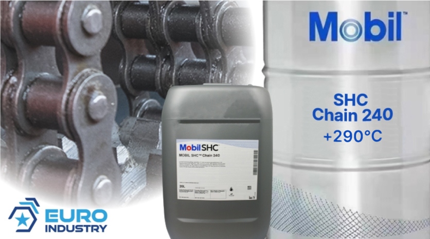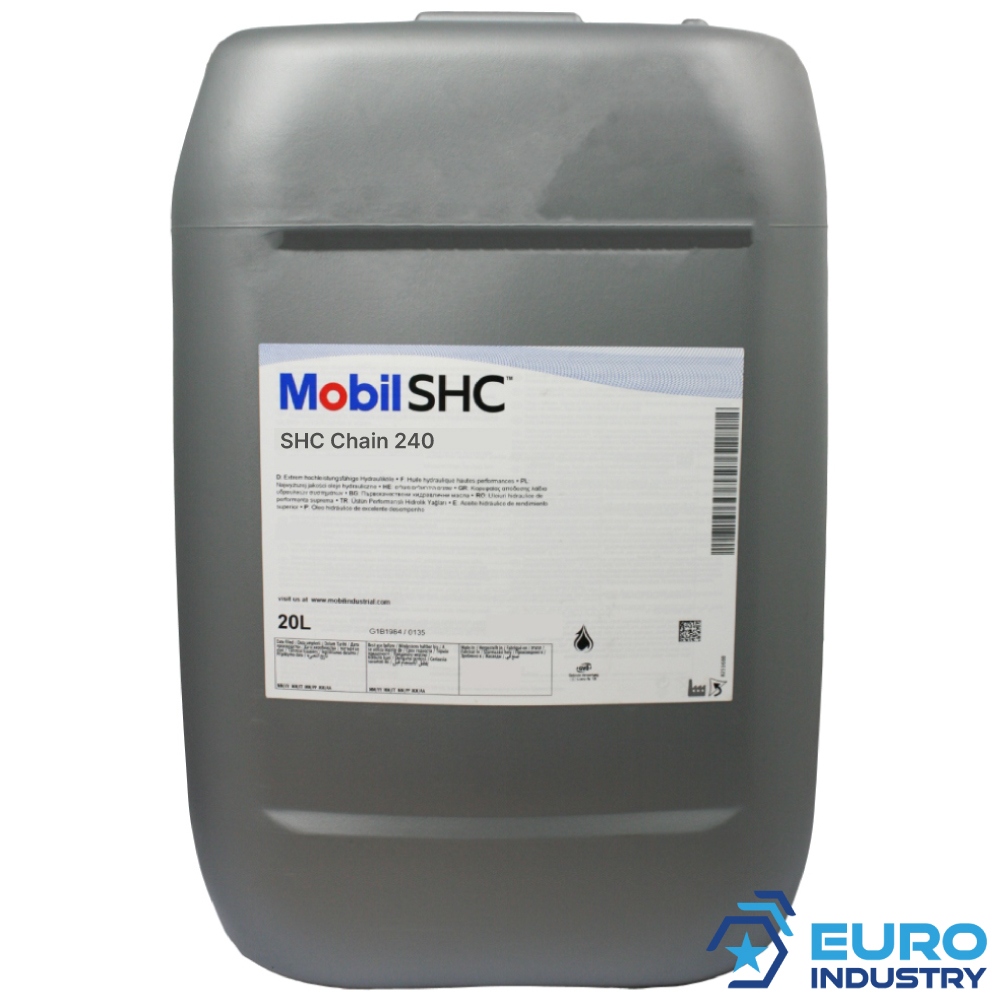 Exxon Mobil SHC™ Chain 240 is an exceptional performance chain lubricant designed for lubrication of high temperature conveyor chains at temperatures up to 290°C / 555°F. It is designed to provide excellent wear protection and resistance to evaporation, thermo-oxidation and coking.ApplicationMobil SHC Chain 240 is specifically designed for the lubrication of oven conveyor chains at temperatures up to 290ºC (555⁰ F)Suitable for high temperature chain applications inFiber glass insulation manufacture Particleboard (OSB , MSB) manufacturePlastics and textiles manufacture Paint oven operationsFeaturesProvide a degree of equipment protection beyond the capabilities of conventional chain lubricantsProvide extra reassurance of trouble-free equipment protection at very high temperaturesExtend equipment life, reduce costs, improve total system performancePrevent wear of chains, sprockets, and other system componentsReduce deposit formation thereby reducing chain stickingProvide lasting lubrication of chains at high temperaturesReduce lubricant consumption compared to conventional chain lubricantsSize: 20l canisterAlso available in: 208l drumTechnical specificationsManufacturer number 153772Copper Corrosion, 3 Hrs @ 100C, Rating, ISO 2160 1ADensity @ 20C, kg/m3, ISO 12185 968Evaporation Loss, 6.5 h, 204 C, mass%, ASTM D972(mod) 1Flash Point (COC), C, EN ISO 2592 290Foam, Sequence I, Stability, 24 C, ml, ISO 6247 0Foam, Sequence I, Tendency, 24 C, ml, ISO 6247 50Four-Ball Extreme Pressure Test, Weld Load, kgf, ASTM D2783 160Four-Ball Wear Test, Scar Diameter, 40 kg, 1200 rpm, 1 h, 75 C, mm, ASTM D4172 0.4Kinematic Viscosity @ 100 C, mm2/s, ISO 3104 19Kinematic Viscosity @ 40C, mm2/s, ISO 3104 245Pour Point, °C, ISO 3016 -24Viscosity Index, ISO 2909 86 Information on product safety (Manufacturer, Contact)EXXONMOBIL CENTRAL EUROPE HOLDING GMBH, Ericusspitze 2, 20457 Hamburg, GERMANY, +49 40 6393 0, , www.exxonmobil.de