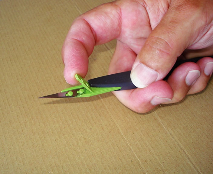 Thin-shaped deburring knife with a retractable blade.For fine work with a retractable blade.Delivered with a premium quality steel blade (105.4) which is easy to change. Information on product safety (Manufacturer, Contact)SAS MURE ET PEYROT, 25 Rue Roger Touton BP 50120, 33041 Bordeaux Cedex, FRANCE, +33 5 56 69 32 00, , www.mure-peyrot.com