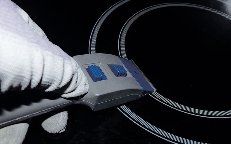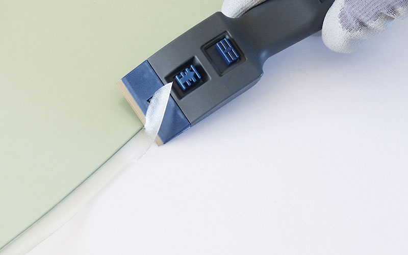 MULTI-PURPOSE AND SAFE SCRAPER. Ideal for removing adhesives and glue from glazing and other substrates.SAFETY • A removable cover protects the blade at rest.Lightweight (59g)Space to evacuate wasteSlider to release the blade to change itErgonomic handleBlade protectionSlider that activates the blade protection at restPossibility of hanging it on the ZICOUTo cut PVB from windshields after autoclave.Scraper for label.Easy blade changeThe blade wears across the entire widthGreat blade stabilitySafe workingThe angle of attack is designed to evacuate the scraped product well.Delivered with a blade ref 144.3Optional blades: 144A.3, Technical specificationsMaterial : PA 6.6 Polyamid + fiberglassType of packaging : in bulkUnit weight: 59 gDimensions (in mm) : 168 x 40 x 20Number per packaging : 4 copy