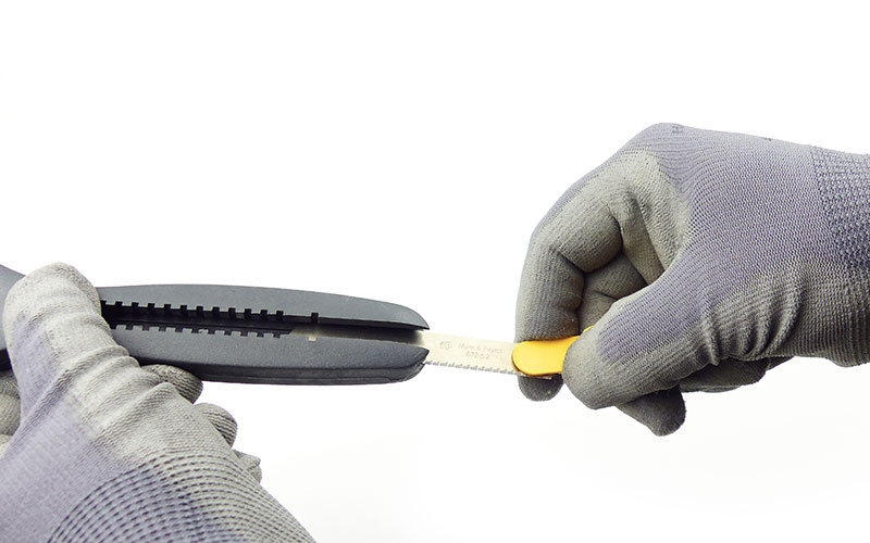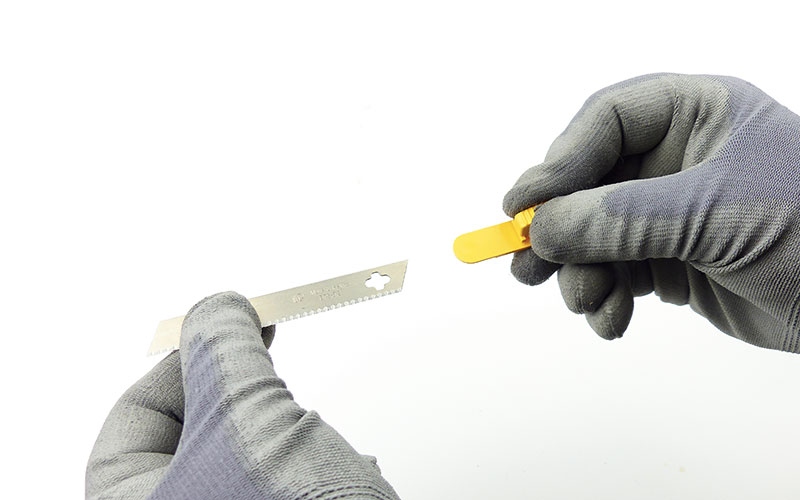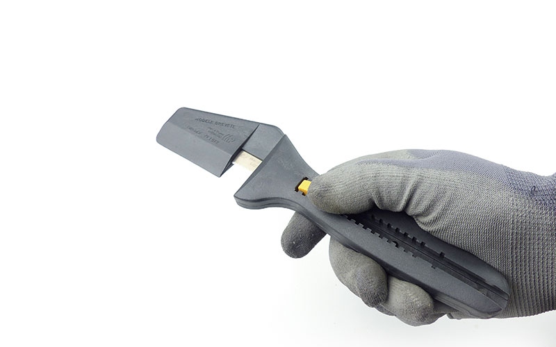 DEBURRING AND CUTTING SAFETY KNIVES – 2 FUNCTIONS: WINDSHIELD DEBURRING & CARDBOARD WORKINGIdeal for deburring windshields and laminated glass. Also used to prepare angles and groove cardboard packagingSAFETY – At rest, the blade retracts completely into the handleThe blade cuts over a long length. It advances by notch and allows uniform wearPossibility to hang it at ZicouAngle and edge to groove the boxes insideGuide heel for the start of boxes or positioning on the windshieldsNon-slip ribbed sliderSupplied with a long toothed blade ref. Optional blade: 172.5Technical specificationsMaterial : PA 6 Polyamid + fiberglassType of packaging : in bulkUnit weight: 93 gDimensions (in mm) : 228 x 54 x 21Number per packaging : 10 copy