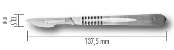 Scalpel handle no 4 in stainless steel. Compatible blades 18, 20, 21, 22, 23, 24, 25Blade Ref.; Ref. 24, Ref. 22, Ref. 21, Ref. 18, Ref. 20, Ref. 25, Ref. 23Weight (pkg); 0,250 kgSize of knife; 137.5 x 13.5 mm Information on product safety (Manufacturer, Contact)SAS MURE ET PEYROT, 25 Rue Roger Touton BP 50120, 33041 Bordeaux Cedex, FRANCE, +33 5 56 69 32 00, , www.mure-peyrot.com