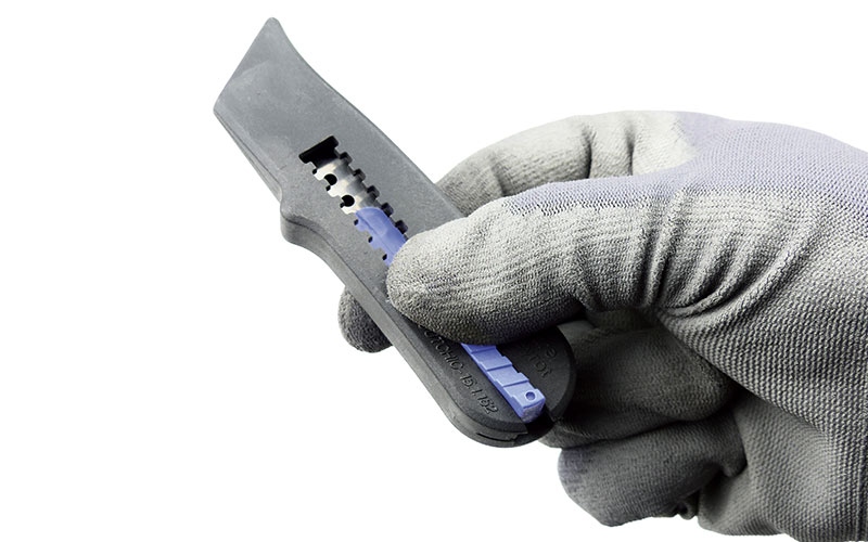 SMALL MULTI-PURPOSE SAFETY KNIFE – Ideal for all handling work, opening boxes and packaging.Ergonomic handleSelf-locking and non-slip ribbed sliderPossibility to hang it on the ZicouAdjustable blade outletCursor position notches for blade adjustmentLightweight (36 g)Safety of useSeveral cutting depths possibleEasy blade change from behindReversible bladeManually retractable bladePossibility of adapting several slat formatsHigh cutting precisionResistant to acetone and detergentsDelivered with a pointed tip blade ref 152.6Optional blades: 152A.6, 652.6.2, 652A.6.2, , Technical specificationsMaterial : PA 6 Polyamid + 30 % FVType of packaging : SkinpackUnit weight: 36 gDimensions (in mm) : 116 x 32 x 16Number per packaging : 10 copy