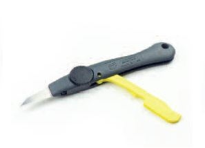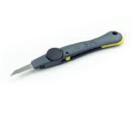 DEBURRING SAFETY KNIVES – Ideal for all deburring work and cutting soft plastic.SAFETY • The knife has a removable blade cover when at rest.Ergonomic handle – great gestural comfortPossibility to hang it at ZicouBlade protectorWheel to change the bladeErgonomic and lightweightEasy blade changeNo contact with the blade at rest with the protective capHigh cutting precisionEasy to use for right and left handedResistant to acetone and detergentsSupplied with a straight blade Several formats of the blade possible: 180A.6, , 120A.6Technical specificationsMaterial : PA 6 Polyamid + 30% FVType of packaging : on cardUnit weight: 39 gDimensions (in mm) : 183 x 33 x 17Number per packaging : 10 copy