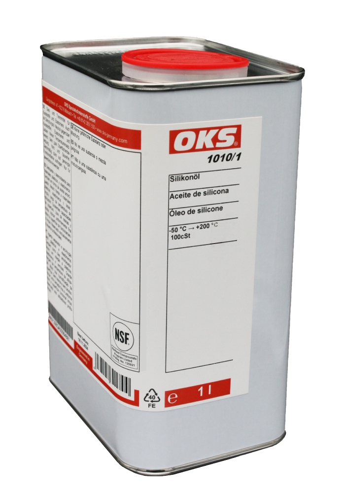 Silicone oil with 100 cSt, highly suited as lubricant and parting agent for plastics and elastomersField of applicationParting agent at foundry operations injection moulding, blowing and extruding processes of plastics and elastomerSliding agent against noisy rubbing of plastics, elastomers and metals together or against each otherLubrication of cutting edges in the paper, cardboard, veneer layer and textile processing machinesFor easy retracting of plastic and rubber profiles, e.g. in the door and window productionPropertiesHigh efficiency because of excellent netting of the surface and building of extremely thin lubricating filmsSeparating effect with antistatic propertiesManifold applications for permanent lubrication, protection, maintaining and impregnationNeutral behaviour against plastic and elastomersResistant against water and atmospheric influencesAvoids the sticking of e.g. adhesives and sealing excess or water wettingCan be supplied in viscosities of 50 to 5000 cStTechnical DataOperating temperature -50°C until +200° CDensity (20°C) 0.96 – 0.97 g/mlViscosity (25°C) 100 mm²/sContent 1lCanIndustriesRail vehicle technologyMunicipal servicesIron and steel industryRubber and plastic processingLogisticsPaper and packaging industryChemical industryShipbuilding and marine technologyPlant and machine (tool) engineeringGlass and foundry industry Information on product safety (Manufacturer, Contact)OKS Spezialschmierstoffe GmbH, Ganghoferstr. 47, D-82216 Maisach-Gernlinden, +49 8142 3051 500, , www.oks-germany.com