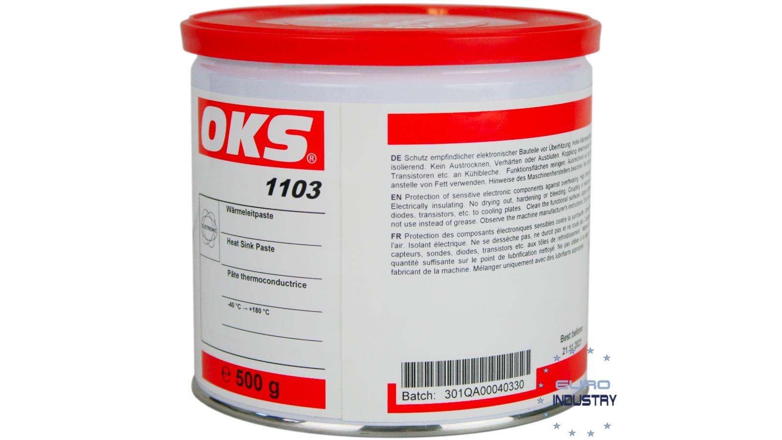 Heat sink paste to protect sensitive electronic components against overheatingField of applicationProtection of sensitive components such as sensors, probes, measuring instruments or semiconductors, such as diodes, transistors thyristors through improving the heat linking to cooling plates or metal housingsFor optimal cold transfer when using Peltier elementsPropertiesHighly effective due to good heat conductivityElectrically insulatingEconomical due to minimal consumption quantitiesResistant to acids and lyesWithout significant change in the consistency as well as constant thermal conductivity across the entire temperature rangeTechnical specificationsTemperature range -40°C to max +180°C Thermal conductivity approx. 0.7 W/mKDielectric strength (20°C) approx. 19 kV/mmThermal capacity (21°C) approx. 1.03 J/cm³KContent 500gTinIndustriesRail vehicle technologyMunicipal servicesIron and steel industryRubber and plastic processingLogisticsPaper and packaging industryChemical industryShipbuilding and marine technologyPlant and machine (tool) engineeringGlass and foundry industry