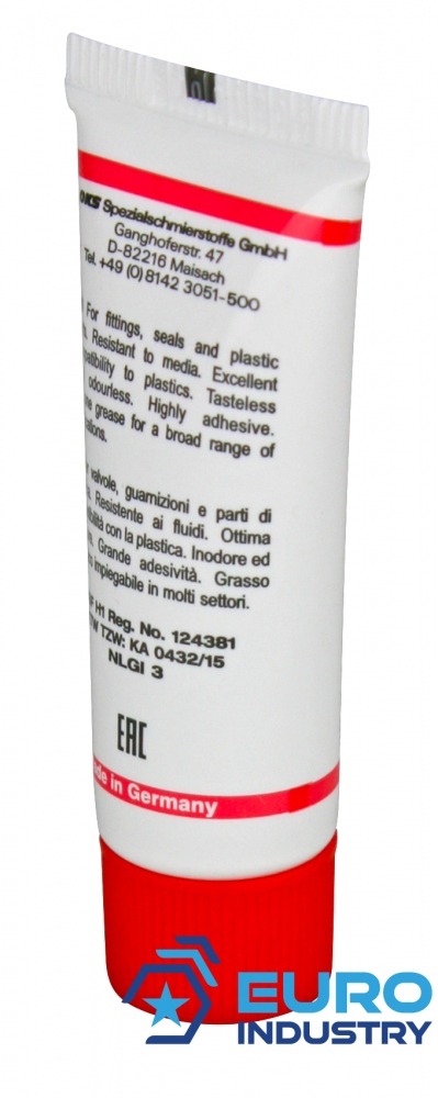 OKS 1110 is a highly adhesive transparent multi-usage silicone grease for fittings, seals and plastic parts. Suitable for the food processing industry.Field of applicationSealant and lubricant for cold and hot-water valves in vehicle heating systems or cooling circuits and for ground seals on glass taps and desiccatorsLubrication of O-rings and rubber seals for assembly and during operationLubrication of plastic partsPropertiesNSF H1 registeredTasteless and odourlessHighly effective due to excellent adhesion on all materialsNeutral behaviour with regard to plastics and elastomersCompletely EPDM-compatibleHigh long-term stability without drying out, hardening or bleedingResistant to cold and hot water, as well as acetone, ethanol, ethylene glycol, glycerine and methanolMOSH/MOAH-freeTechnical DataBase oil: silicone oilThickener: inorganicLower operating temperature: -40 °CUpper operating temperature: 200 °CConsistency grade (NLGI): 3Viscosity at (40°C): 9,500 mm²/s (base oil)Density (20°C) 1 g/cm³ OKS Ref: 1106450412Size: 10mlPackaging type: tubeAlso available in: , , , , , , and IndustriesCatering equipment and food processing technologyShipbuilding and marine technologyLogisticsChemical industryPaper and packaging industryIron and steel industryRail vehicle technologyGlass and foundry industryMunicipal servicesPlant and machine (tool) engineeringRubber and plastic processing