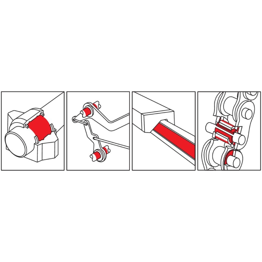 Synthetic silicone-free high-temperature chain oil with MoS₂ for machine elements and loadsField of applicationLubrication of chains, fringe bearings, hinges, joints, clamping and drying frames or slideways at higher temperatures and loadsFor conveying systems under radiation heat in painting, stoving and drying systemsPropertiesHighly effective due to finest, homogeneous MoS₂ distribution in the oilEmergency running properties through MoS₂ at dry runningOutstanding adhesion and lubrication effect with no tendency to drip or dry outSilicone-freeTechnical DataTemperature range -30°C to +250°CDensity (20°C) 0.90 g/mlViscosity (40°C) 240 mm²/sCoefficient of friction SRV (DIN 51834-2, 50°C) µ = 0.125Coefficient of friction SRV (DIN 51834-2, 200°C) µ = 0.135Content 5lCanisterIndustriesRail vehicle technologyMunicipal servicesIron and steel industryRubber and plastic processingLogisticsPaper and packaging industryChemical industryShipbuilding and marine technologyPlant and machine (tool) engineeringGlass and foundry industry Information on product safety (Manufacturer, Contact)OKS Spezialschmierstoffe GmbH, Ganghoferstr. 47, D-82216 Maisach-Gernlinden, +49 8142 3051 500, , www.oks-germany.com