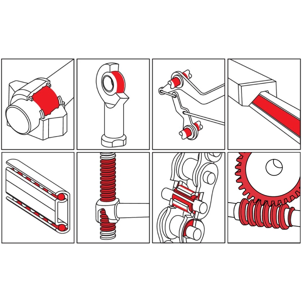 OKS 387 High-temperature chain lubricant for food processing technology 25l canisterHigh-temperature chain lubricant with graphite for strongly loaded lubrication points at extreme temperatures (NSF H1 registered)Field of applicationLubrication of highly stressed chains, joints or slideways at higher temperaturesFor conveying systems running beneath radiated heat, in baking and drying lines in the foodstuffs industryDry lubrication at operating temperatures above 200°CThe synthetic oil content evaporates odorlessly without leaving residues, while the solid lubricant content are left behind to carry out dry lubricationPropertiesHighly suitable as a high-temperature lubricantHighly effective due to homogeneous distribution of the finest graphite throughout the oilVersatile application as a liquid lubricant under high temperature conditionsResistant to water, chemicals, fuels, lubricants, and hydraulic oilsTechnical DataTemperature range up to max. +200°C (after vaporising the oil contained inside, up to max. +600°C)Density (20°C) 1.04 g/mlViscosity (40°C) 190 mm²/sFour-ball test rig (welding load) 2,800 NNSF H1 registered N° 126583Content 25lCanisterIndustriesCatering equipment and food processing technologyRail vehicle technologyMunicipal servicesIron and steel industryRubber and plastic processingLogisticsPaper and packaging industryChemical industryShipbuilding and marine technologyPlant and machine (tool) engineeringGlass and foundry industry Information on product safety (Manufacturer, Contact)OKS Spezialschmierstoffe GmbH, Ganghoferstr. 47, D-82216 Maisach-Gernlinden, +49 8142 3051 500, , www.oks-germany.com