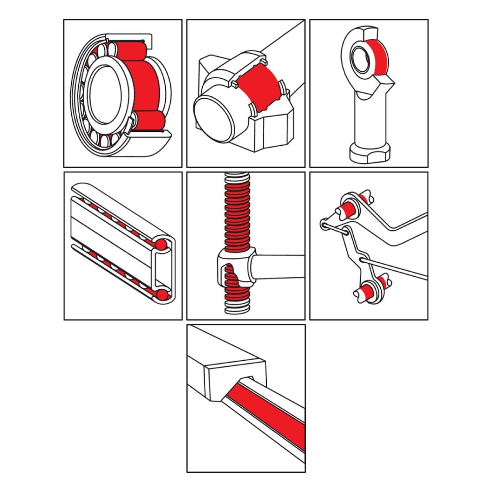 Field of applicationFor lubrication points of all kinds as slide ways, spindles, geared parts of the electronic, precision engineering and optical equipment, temporarily or permanently exposed to extreme low temperatures like in arctic climates or cold storagesRoller bearing lubrication of high-speed bearings, e.g. spindle bearings, miniature or precision bearings in machine-tools or textile machines, measuring equipment, electric motors of control technology and precision mechanicsBest use at arctic conditions and very high speedPropertiesDynamic light noise proofed long-term lubrication greaseHigh efficiency through optimal formulationMultifunctional application beside the regular range of performance for greasesNo nameable change of consistency at low temperatures or high speeds and accordingly temperaturesOxidation stable and resistant against cold and hot water Technical DataOperating temperature -50°C until +120° CNLGI grade 2DN factor (dm x n) 1,000,000 mm/minBase oil viscosity (40°C) 15 mm2/sFour-ball test rig (welding load) 2,400 NContent 400mlCartridgeIndustriesRail vehicle technologyMunicipal servicesIron and steel industryRubber and plastic processingLogisticsPaper and packaging industryChemical industryShipbuilding and marine technologyPlant and machine (tool) engineeringGlass and foundry industry