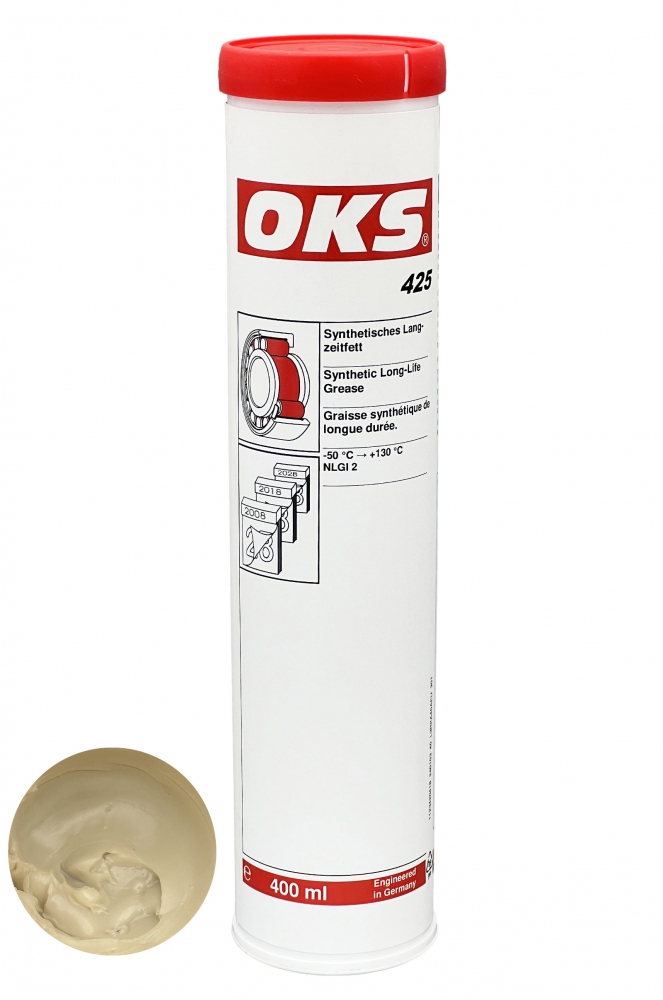 Synthetic grease for long-term lubrication of machine elements Field of applicationFor the long time- or for lifetime- lubrication of fast running roller and plain bearings as well as linear guides, threaded and ball screw spindles, small gears and similar components, exposed to high pressures and higher temperaturesPropertiesGood adhesive and good media resistantGood low-temperature behaviour, stress absorbing ability and smooth run at high speedsGood plastic compatibilityThe low start and running moment, especially at low temperatures, enables a high efficiencyThe good wear protection increases the life time of the part and makes sure a reliable functionTechnical DataOperating temperature -50°C until +130° CNLGI grade 2DN factor (dm x n) 1,000,000 mm/minBase oil viscosity (40°C) 30 mm²/sFour-ball test rig (welding load) 3,400 NContent 400mlCartridgeIndustriesRail vehicle technologyMunicipal servicesIron and steel industryRubber and plastic processingLogisticsPaper and packaging industryChemical industryShipbuilding and marine technologyPlant and machine (tool) engineeringGlass and foundry industry