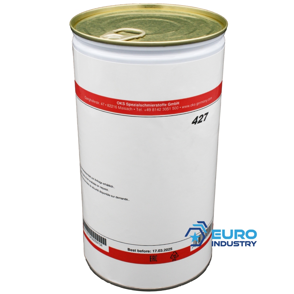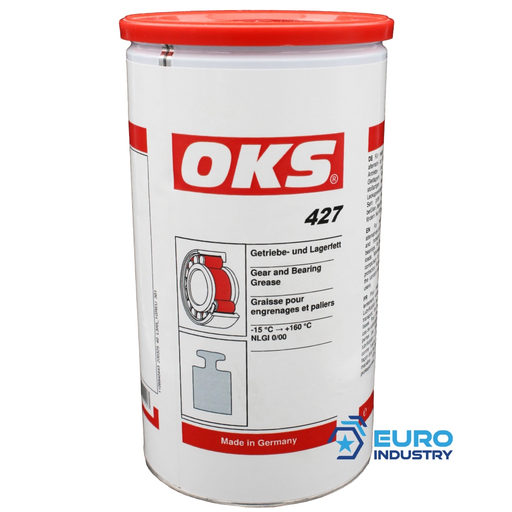 OKS 427 is a gear and bearing grease at high temperatures and high loads.Field of applicationLubrication of highly stressed and relatively slowly running gears where due to leakage a grease must be used instead of oilFor drives under high and shock loadChain lubrication of e.g. hollow pins, chains in the conveyor and transport field, under the influence of water and vapour and at higher operation temperaturesBearing lubrication of roller and plain bearings at annealing furnaces and drying equipments, manipulators and robots, conveyor and cooling systems, machines of preserve industry, steam sterilizers, etcPropertiesBest use in corrosive operation conditions with high operation temperatures and high pressure and shock loadEconomically due to optimum formulationReduces wear and thereby downtime and enables long-term lubricationRopy, strongly adhesive, temperature and water resistant, noise dampening, high-load and shock absorbing Technical DataOperating temperature -10°C until +160° CNLGI grade 0-00Base oil viscosity (40°C) 490 mm²/sContent 1kgTinIndustriesRail vehicle technologyMunicipal servicesIron and steel industryRubber and plastic processingLogisticsPaper and packaging industryChemical industryShipbuilding and marine technologyPlant and machine (tool) engineeringGlass and foundry industry