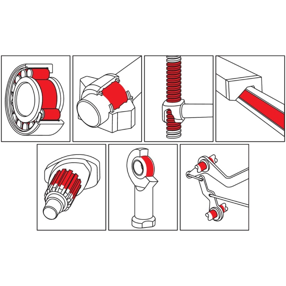 Universal grease with white solid lubricants and NSF H2 approval for the food processing industryField of applicationLubrication of normal-load friction, rolling and pivoting bearingsLubrication of spindles and guides at machinesLubrication of moving parts at fine-mechanical devices as well as household appliancesPropertiesLubrication when dark-coloured lubricants cannot be usedSaving of maintenance and lubricant costs by reducing downtimes and corrective maintenanceWaterproofTechnical DataBase oil: mineral oilThickener: lithium hydroxystearateSolid lubricants: white solid lubricantsOperating temperature: -30°C until +120° CNLGI grade: 2DN factor (dm x n): 300,000 mm/minBase oil viscosity (40°C): approx. 110 mm²/sFour-ball test rig (welding load): 3,600 NNSF H2 registeredSize: 5kg Packaging type: hobbockAlso available in: , , , IndustriesCatering equipment and food processing technologyRail vehicle technologyMunicipal servicesIron and steel industryRubber and plastic processingLogisticsPaper and packaging industryChemical industryShipbuilding and marine technologyPlant and machine (tool) engineeringGlass and foundry industry