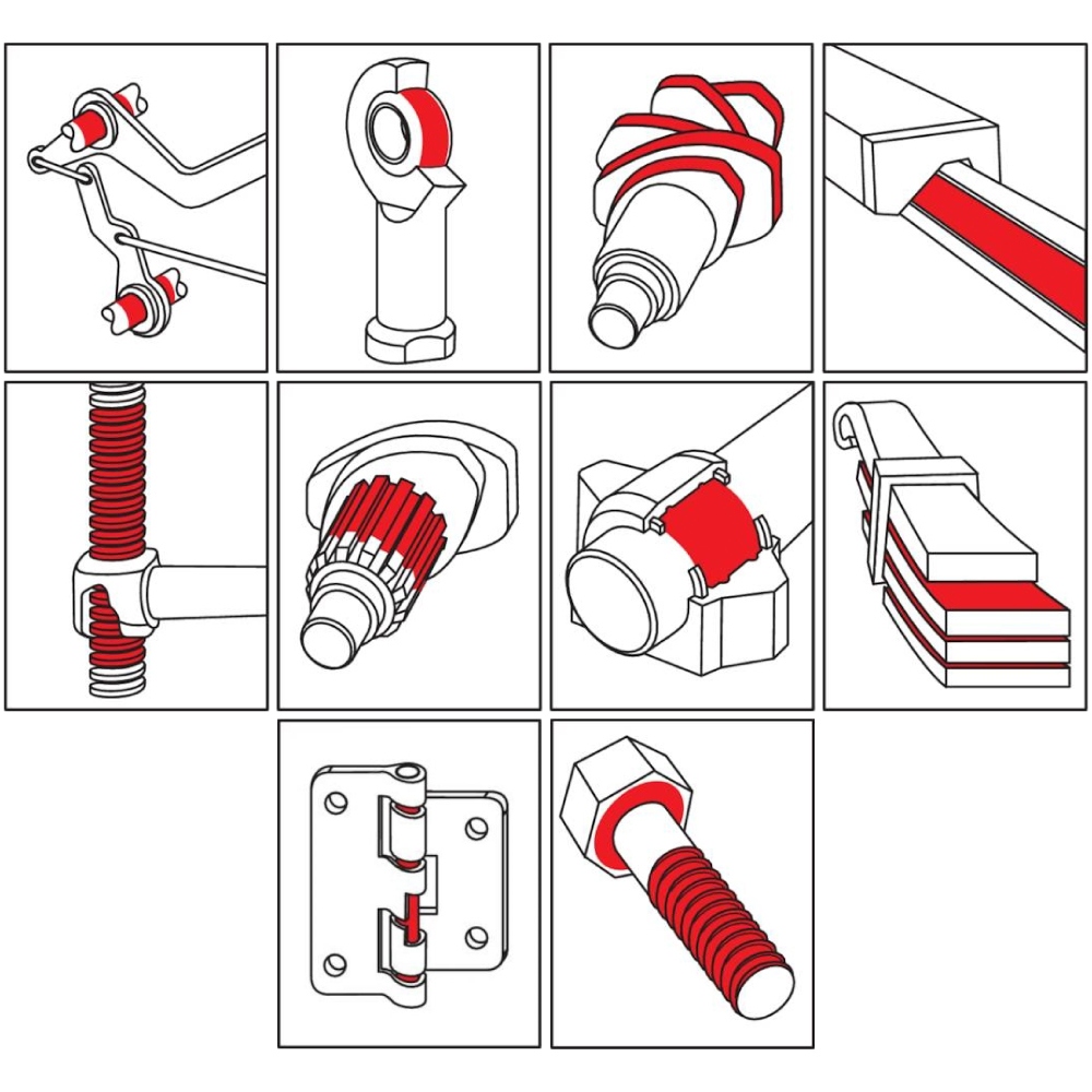 PTFE bonded coating for sliding surfaces made of different materials at low pressures, low speeds and in dusty environmentsField of applicationDry lubrication of most different materials sliding on resp. rubbing against each other like metals, wood, ceramics, rubber as well as paintable plasticsFor packing machines, sliding areas in the plastics and textile industry, rollers and chutes in the transport range, etc.Non-stick coating of all kinds of sealings and sealing areas to avoid stickingSqueaking of soft on hard materials (e.g. rubber on glass)For water-repellent impregnation of absorbing materialsAs separating film for casting resin applicationsPropertiesThin, tack-free separating film with very good adhesive properties on prepared surfacesBest suitability for low-friction lubrication of all kind of materials in contactColourless and odour-free antifriction coating with non-stick propertiesTechnical DataOperating temperature -180°C until +250°CCan be mixed with water in ratio of up to 1:3Content 5kgCanisterIndustriesRail vehicle technologyMunicipal servicesIron and steel industryRubber and plastic processingLogisticsPaper and packaging industryChemical industryShipbuilding and marine technologyPlant and machine (tool) engineeringGlass and foundry industry