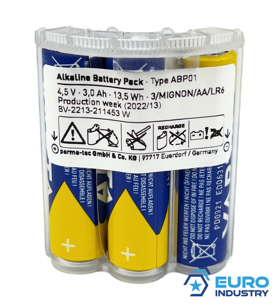 Perma battery set for STAR Vario | N° 101351Required every time the LC units are changed (S60, M120, or L250)Size: 3/MIGNON/AA/LR63x VARTA Industrial PRO ALKALINE: Type 4006, IEC LR6, AA, 1,5 V, 2970 mAhShelf life: 10 yearsType: ABP01Voltage: 4.5V Capacity: 3.0Ah / 13.5 Wh Information on product safety (Manufacturer, Contact)perma-tec GmbH & Co. KG, Hammelburger Str. 21, 97717 Euerdorf, Deutschland, +49 9704 609-0,