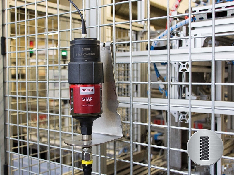 Perma STAR CONTROL Gen. 2 – Enables automated and highly precise lubrication up to a distance of 5 m | N° 108985 The perma STAR CONTROL is supplied with external power via cable. The operating status can be transmitted to a PLC and evaluated.The two integrated operating modes TIME and IMPULSE offer flexible use. In TIME mode, lubricant discharge is based on operating hours. In IMPULSE mode, a precisely defined quantity is dispensed as soon as voltage is supplied.The perma STAR CONTROL consists of an electromechanical drive and an LC with 60, 120, 250 or 500 cm³ of lubricant. The required mode is set on the drive. Lubrication is precise and temperature-independent at a counter pressure up to 6 bar.CharacteristicsFlexible handling via simple setting of TIME or IMPULSE mode; can be changed at any timeFast, simple control of settings, remaining impulses or operating hours until exchangeFreely selectable PIN protects against possible tamperingReliable, precise lubricant discharge independent of temperature and counter pressureQuick function control due to visual or electronic signals on the lubrication system and plant error reporting system saves time and relieves maintenance workersMounting up to 5 m outside of dangerous areas or at easy-to-access locations increases workplace safetyHigher equipment availability since LC can be easily exchanged during running operationLubrication point can be purged to clear blockagesField of applicationperma STAR CONTROL is used to lubricate roller and sliding bearings, sliding guides, open gears, gear racks, spindles, shaft seals and chains.Due to the precise lubricant metering, perma STAR CONTROL is ideally suited for lubrication of electric motors with specified lubricant quantities.The system is protected against dust and water jets, subject to correct assembly of the individual parts (IP65).Technical specificationsDrive: ElectromechanicalPower supply: External: 9 – 30 V DC, I (max) 0,5 ADischarge period: 1, 2, 3, …, 12 months / Impulse controlLubricant volume: 60 cm³, 120 cm³, 250 cm³, 500 cm³Operating temperature: -40 °C to +60 °CPressure build-up: 6 barNumber of outlets: 1Protection class: IP 65Lubricants: Grease up to NLGI 2 / oilMax. tube lengths: 5.00 m Information on product safety (Manufacturer, Contact)perma-tec GmbH & Co. KG, Hammelburger Str. 21, 97717 Euerdorf, Deutschland, +49 9704 609-0,