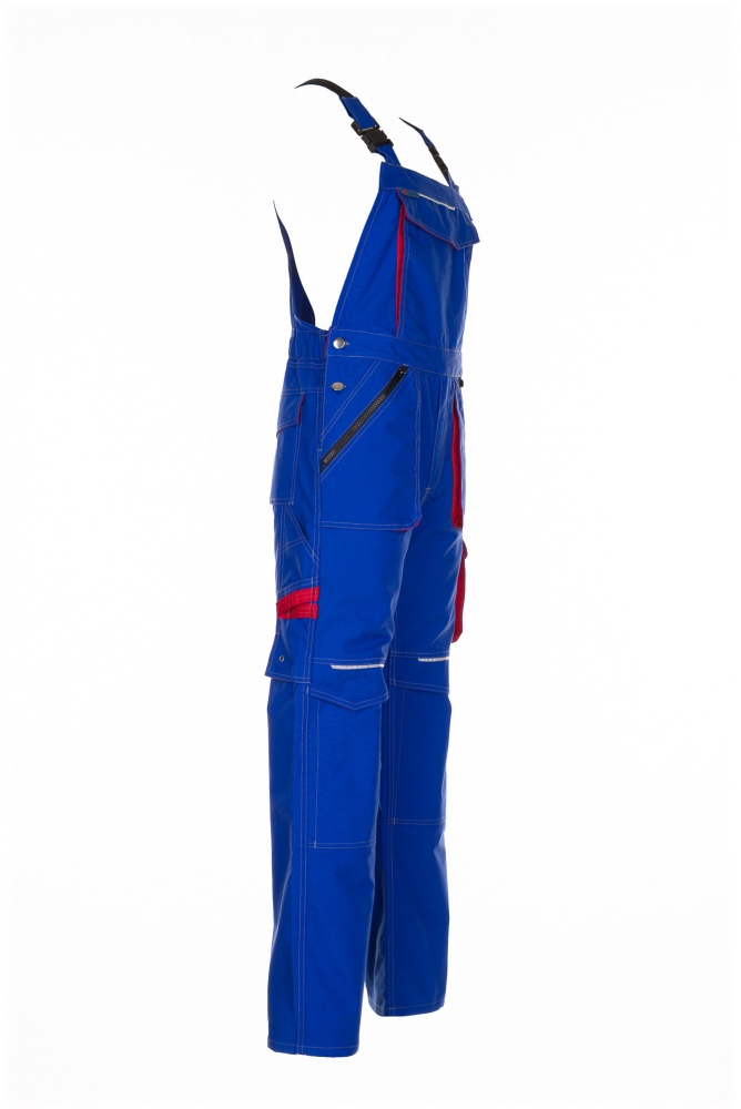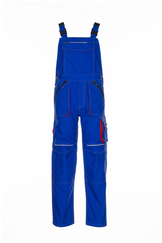 A great fit from head to toeA classic workwear item, Basalt Dungarees are comfortable to wear and will not fall down thanks to the raised back,while the reflective piping is a stylish design element.Additional InformationProduct lines: Basalt WorkwearColour: royalblue/redProduct group: 2831MaterialMain colour65 % polyester, 35 % cottonApprox. 260 g/m², Ripstop lookContrasting colour65 % polyester, 35 % cottonApprox. 285 g/m²Design Reflective piping 3M™ Scotchlite™ Reflective material 8912N silverExtra2 patch knee pockets which are opened from aboveDouble ruler pocket on the rightThigh pocket with flap and Velcro closure on the leftMobile phone pocket on the leftBib pocket with flap and Velcro closure2 back pockets with flap and Velcro closureZip flyAdjustable waistband with jeans buttonHigh back with bracesBraces have elastic insert, buckles on the bracesReflective stripsHammer loopSizes: 42 – 44 – 46 – 48 – 50 – 52 – 54 – 56 – 58 – 60 – 62 – 6490 – 94 – 98 – 102 – 106 – 11024 – 25 – 26 – 27 – 28 – 29Care instructions Information on product safety (Manufacturer, Contact)PLANAM Arbeitsschutz Vertriebs GmbH, Letter Strasse 50, 33442 Herzebrock-Clarholz, GERMANY, +49 5245 8606-0, , www.planam.de