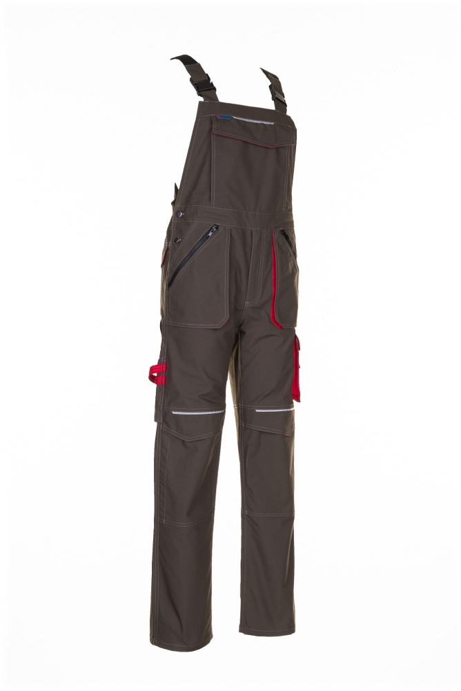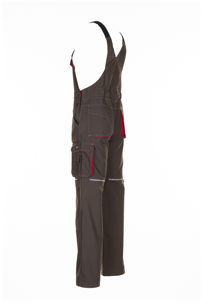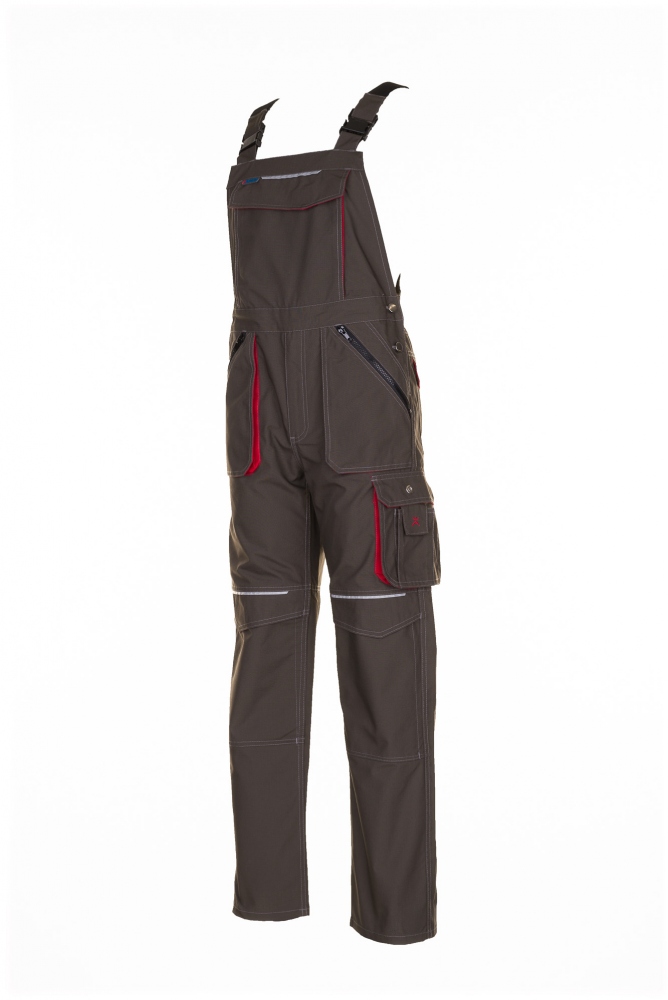 Planam 2833 Basalt working Dungarees olive/red