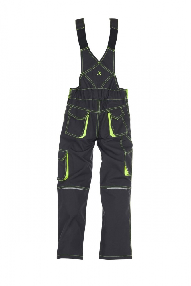 Freedom to move around 2 patch bib pockets with flap and Velcro closure2 patch side pocketsthigh pocket with flap and press stud on the leftdouble ruler pocket on the rightwaist size adjuster with press studelasticated waist bandzip flyreflective piping as a safety features2 patch back pockets with Velcro closurehigh back with braceselasticated bracesafety buckle on the bracesAdditional InformationMain colour: 65 % polyester, 35 % cottonapprox. 260 g/m², ripstop lookContrasting colour: 85 % polyester, 15 % cottonapprox. 300 g/m²Safety equipment: 3M™ Scotchlite™ reflective material 8912 N silverMeets the DIN EN 14682:2015 standards governing safety in children‘s clothing