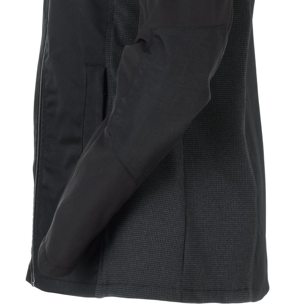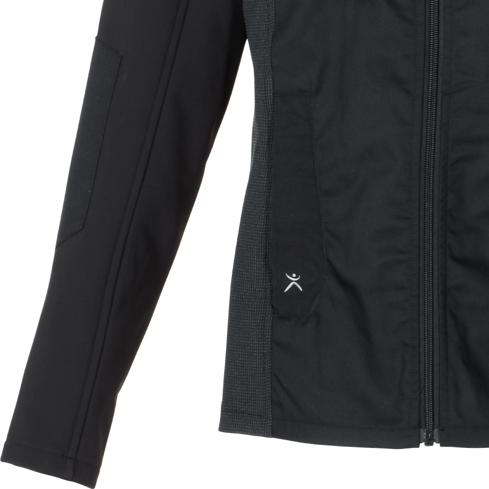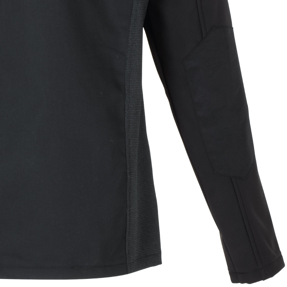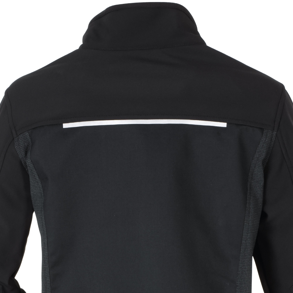 The perfect combination of polyester and cotton will make you look good and feel comfortable. The fitted cut and elastic inserts ensure maximum comfort.main colour material: 65% polyester, 35% cotton approx. 245 g/m²Contrasting material Softshell outer layer: 96% polyester, 4% elastane, TPU membrane, approx. 260 g/m²Contrasting material Softshell inner layer: 100% polyester FleeceReinforcements: 100% nylon, approx. 195 g/m²Elastic insert: 95% polyester, 5% elastane approx. 165 g/m²Colour: blackSpecifications2 side pockets with zip and robust flap1 breast pocket on the right with zipReflective piping on the breast pocket and on the backFront zipFleece lining in the collar, arms and shouldersElbows with robust trimSide stretch insert for optimum fit