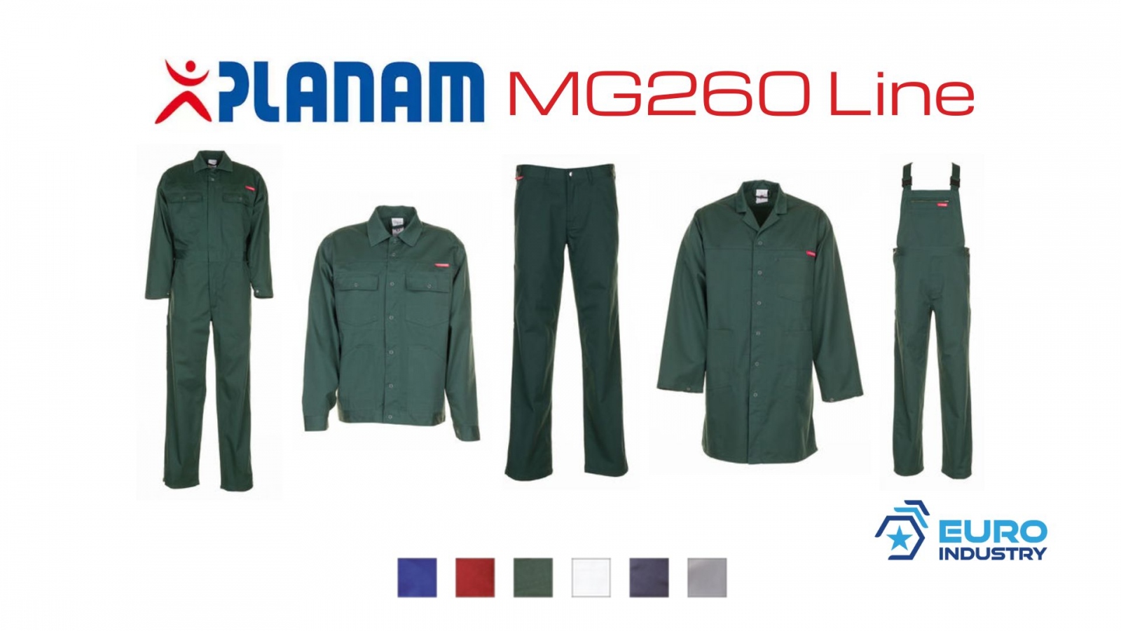 Functional and durable work overall Durable cotton overall with elastic in back as well as adjustable leg hem and cuffsSpacious pockets for large and small tools.2 side pockets, 1 double ruler pocket2 reinforced chest and 1 back pockets with flaps and press-studs to protect your items safelyEasy to put and take off thanks to covered 2-way zipRobust wear: the mix MG260 of 65 % polyester and 35 % cotton is 8 times more tear- and abrasion-resistant than pure cottonShrink-resistance according to DIN EN ISO 6330Sun protection factor 80 according to UV Standard 801 (UVS 065122)Planam MG260 men’s collection also available in:Color: greenMen’s Sizes: 24 – 29 (short), 42 – 64 (standard), 90 – 110 (long)Click to see the entire MG260 collectionFields of applicationGarden / landscaping e.g. forestry, horticulture, gardener, agriculture, pavingConstruction sitesSteel and metallurgical industriesManufacturing / Warehouse / LogisticsInstallation / Electrical / Building servicesPaintingWood industryAdvantagesMG260 series: comfort, tear-resistant and durableQuality and comfort at an attractive priceIdeal overall for all professionsPractical pocketsPlanam is a German brand that is specialized in the design of workwear for over 30 years. Information on product safety (Manufacturer, Contact)PLANAM Arbeitsschutz Vertriebs GmbH, Letter Strasse 50, 33442 Herzebrock-Clarholz, GERMANY, +49 5245 8606-0, , www.planam.de