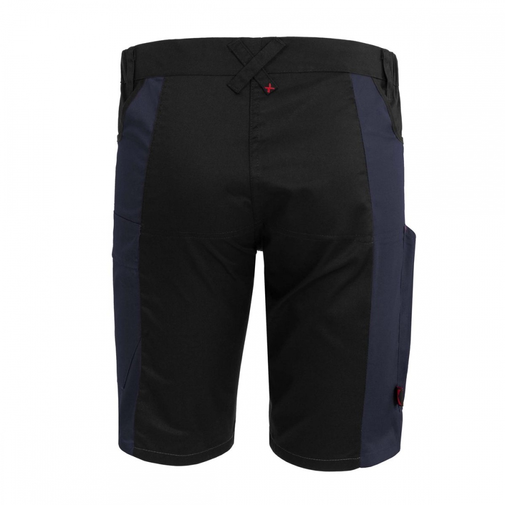Modern men’s work shorts Qualitex® X-Serie for universal use4 pockets and clear lines with a simple, timeless and yet modern design meet the usual high-quality workmanship and the established fabric blend from Qualitex.Material: high quality 2-colored mixed fabric (65% polyester/35% cotton), approx. 245g/m²Weight: appr. 0,3 kgSizes: 42-68 ()Color: navy/schwarzAlso available in, and SpecificationsWaistband with 6 belt loopsPartially elastic waistband on the sidesKnees uncoveredX-bars partly in red, partly tone-on-toneFly with plastic zipWaistband with metal jeans buttonOn request, we can print your company logo on these shortsPockets2 large side pockets extended to the back with separation seams forming a large pocket on the right and a smaller pocket on the left1 ruler pocket on the right side with pen compartment1 left thight pocket with flap coverFields of applicationAutomotive and mechanical engineering industriesAviation industryEnergy industriesConstruction and civil engineeringIndustrial maintenanceWeldersPlumbersElectriciansHeating installers Outdoor activities