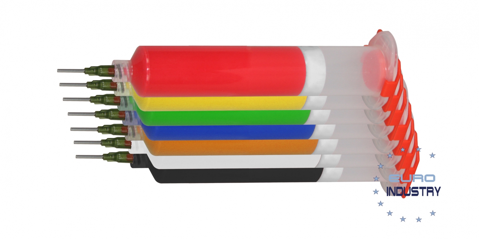 Paint refill cartridge for torque sealant gun Screwmeleon® The paint is suitable to mark any surface, even oily ones and is resistant to (salt-)water, UV-light and high temperatures. Technichal featuresCan be used with the Length: 12,8 cmDiameter: 22 mmWeather-resistantSuitable for the marking of tires and mechanic partsThe paint is opaque, covering and brightResistant to (salt-)water and UV-lightResistant to temperatures of up to 200 ° C / 392 ° FContains no toluene, nor xyleneRemovable only with grinder or special solventsContent: 30 mlThis item will be delivered without extension needleHazard-determining components for labeling:n-butyl acetateHazard statementsH226 Flammable liquid and vapor.H336 May cause drowsiness or dizziness.Precautionary statementsP210 Keep away from heat/sparks/open flames/hot surfaces. No smoking.P241 Use explosion-proof electrical equipment/ventilation systems/lighting.P261 Avoid breathing dust/fume/gas/mist/vapours/spray.P303+P361+P353 IF ON SKIN (or hair): Remove/take off immediately all contaminated clothing. Rinse skin with water/shower.P405 Store locked up.P501 Dispose of contents/container in accordance with local/regional/national/international regulations.Labelling of packaging with a content of not more than 125 mlHazard pictograms ×Hazardous materials. The forwarding charges may be raised, if shipping to: DE, AT, NL, GB, CH, CZ, IT, ES, FI, NO, BE, IE, RO, PL, FR, PT, LU, DK, LI, GR, SE, SK, BG, SI, CA, LT, EE, LV, HR, SA, Information on product safety (Manufacturer, Contact)E.I.S. Euro Industry Supply GmbH & Co. KG, Heilbronner Str. 150, 70191 Stuttgart, GERMANY, +49 (0) 711 460 59 21 40, , www.euro-industry.com