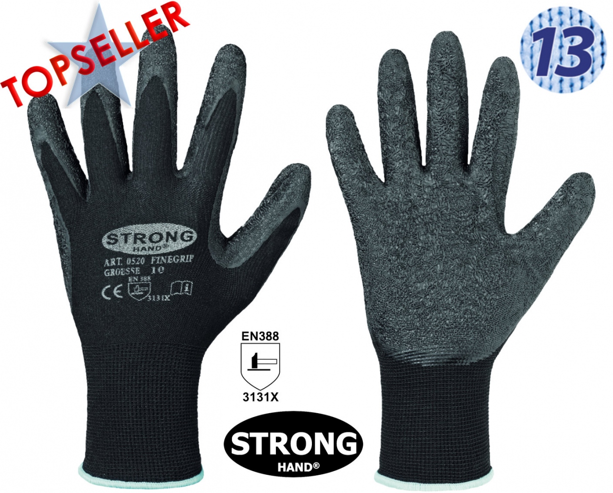 Stronghand 0520 Finegrip Nylon protective gloves, latex coating 6-12